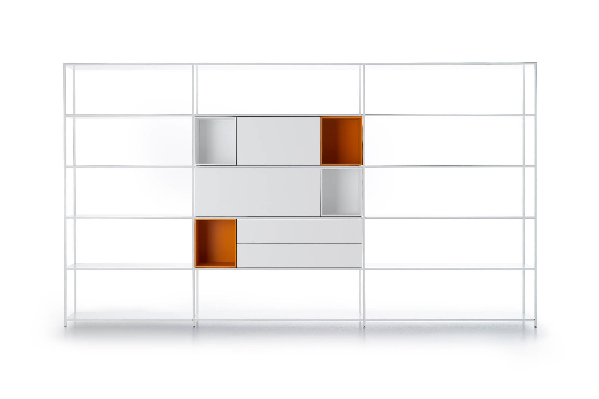 De Mdf Italia Minima 3.0 kasten bestaat uit drie elementen die een kantoorkast samenstelt: een plank, het frame, en een kastdeur. De keuze is aan u om hier een lage kast, hoge kast, staande kast, hangende kast, open kast of kast met deurtjes van te maken. Kenmerken Mdf Italia Minima 3.0De kast bestaat uit verschillende standaard elementen, zoals open kastjes, ladekasten, boekenkasten in verschillende breedtes en hoogtes die vrijstaand zijn of aan de muur opgehangen kunnen worden.