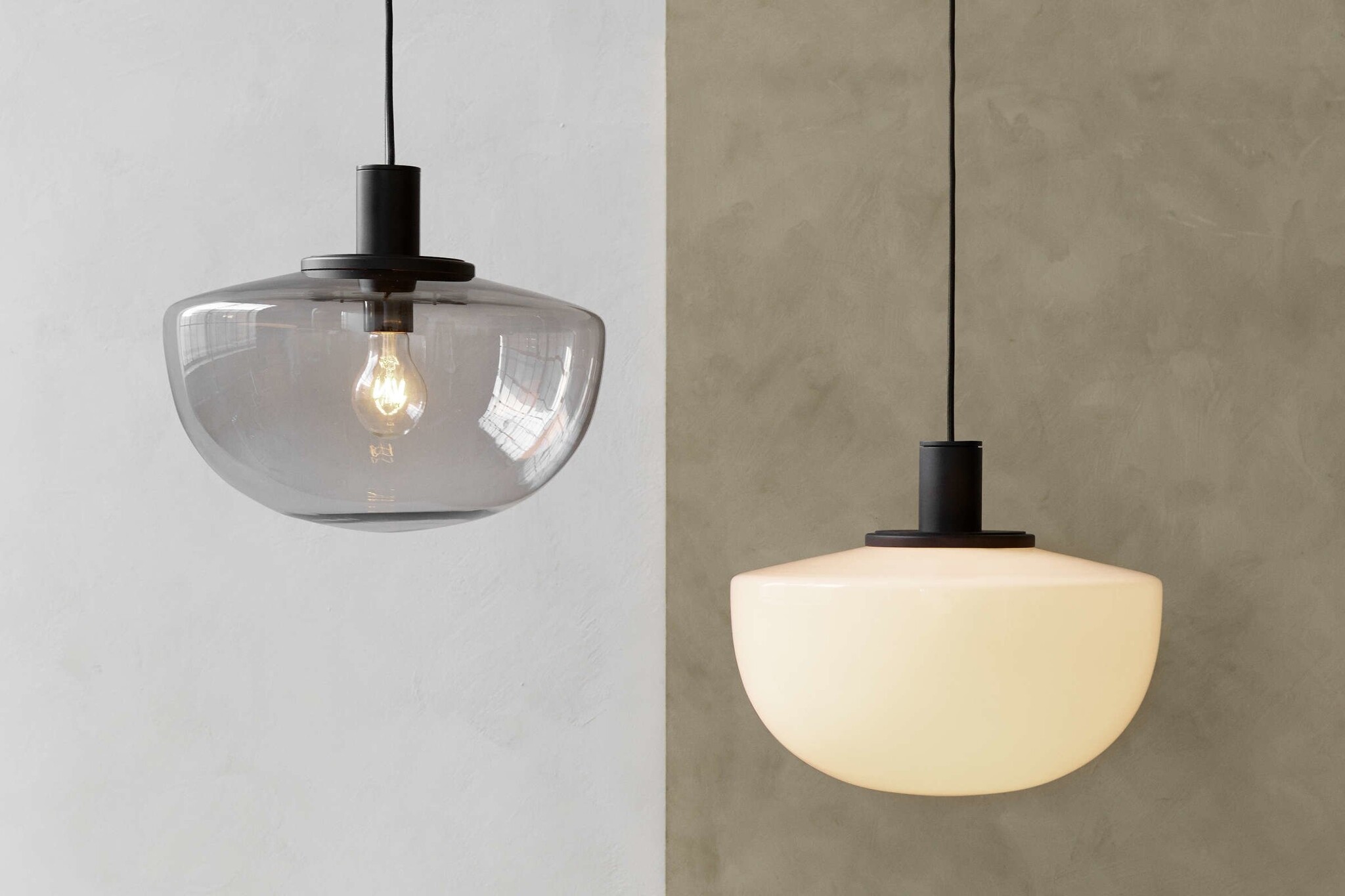 De Menu Bank Pendant is een halfronde plafondhanglamp gemaakt van mondgeblazen glas in opaal of smoke (doorzichtig glas met een zwarte tint) en zwart gepoedercoat aluminium beslag. De hanglamp wordt geleverd met een snoer van maar liefst 4 meter, zodat u deze lamp ook in hoge ruimtes kunt plaatsen. De Menu Bank Pendant zorgt voor sfeerverlichting en is ideaal toe te passen boven vergadertafels, eettafels in uw bedrijfsrestaurant of andere openbare ruimtes.