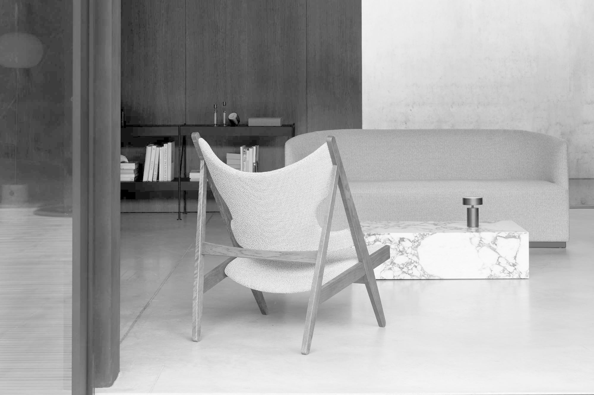 De Menu Knitting Chair is een echte loungefauteuil met een zithoogte van 30 cm, zodat je lekker laag zit. De gehele zitting is gestoffeerd (in leer of stof). Deze stoel werd voor het eerst gelanceerd als een limited edition in 1951 en is nu weer in productie genomen door Menu. Dit is het eerste uitstapje van het merk naar klassiek meubilair. Het gevoel van verhoudingen en ongeëvenaarde kwaliteit van de stoel maakt het een natuurlijke keuze om in hedendaagse interieurs te brengen. Het speelse karakter van de Knitting onderstreept het doordachte ontwerp. De Menu Knitting Chair dankt zijn naam aan de uitsparingen in de elleboog die maximaal comfort bieden tijdens het breien (of lezen).