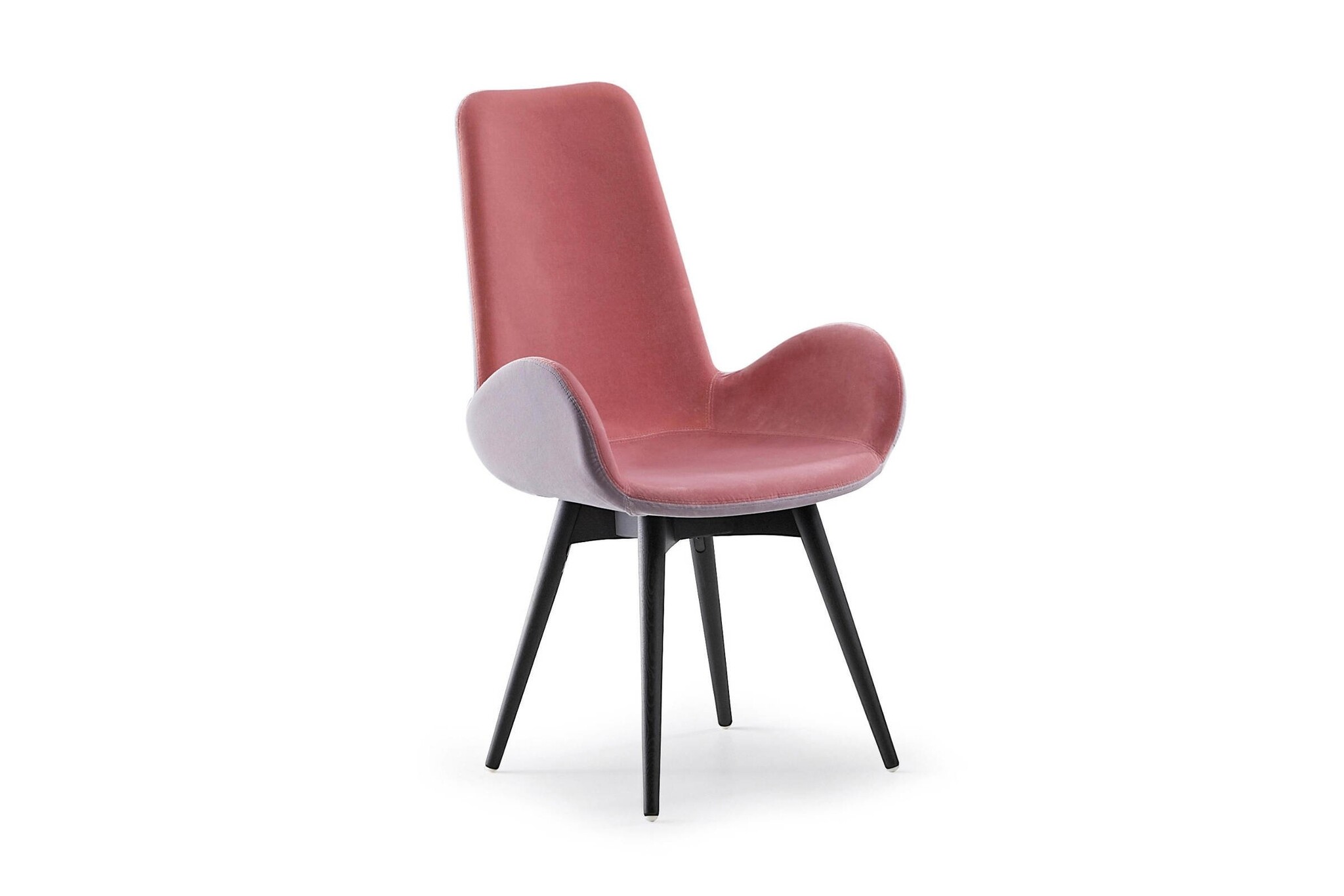 Midj Dalia stoel is leverbaar met 3 verschillende zittingen (hoge rug, lage rug met armleuningen en lage rug zonder armleuningen) en 6 verschillende soorten onderstellen (4-poot, slede, kruisvoet en stervoet op wielen).