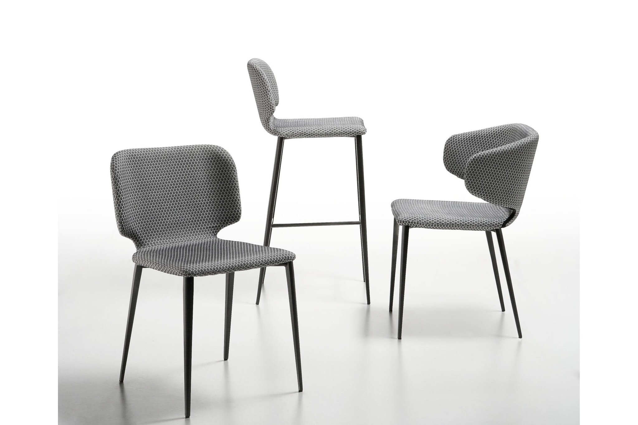 De zitschaal van de stoelen is bekleed met leer, ecoleather, stof of op maat gemaakte stof. Eigen stof kan uiteraard ook, dan is een minimale afname van 4 krukken vereist.
