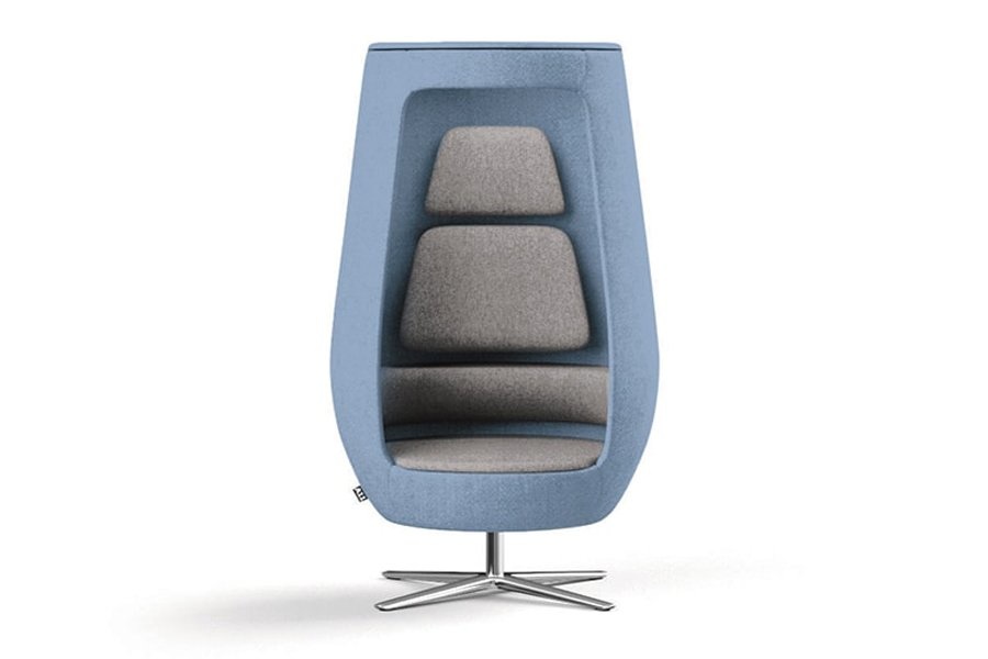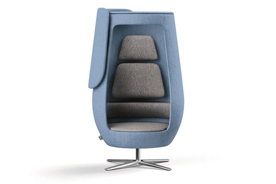 Loungefauteuil met akoestische eigenschappen in de vorm van een cocon