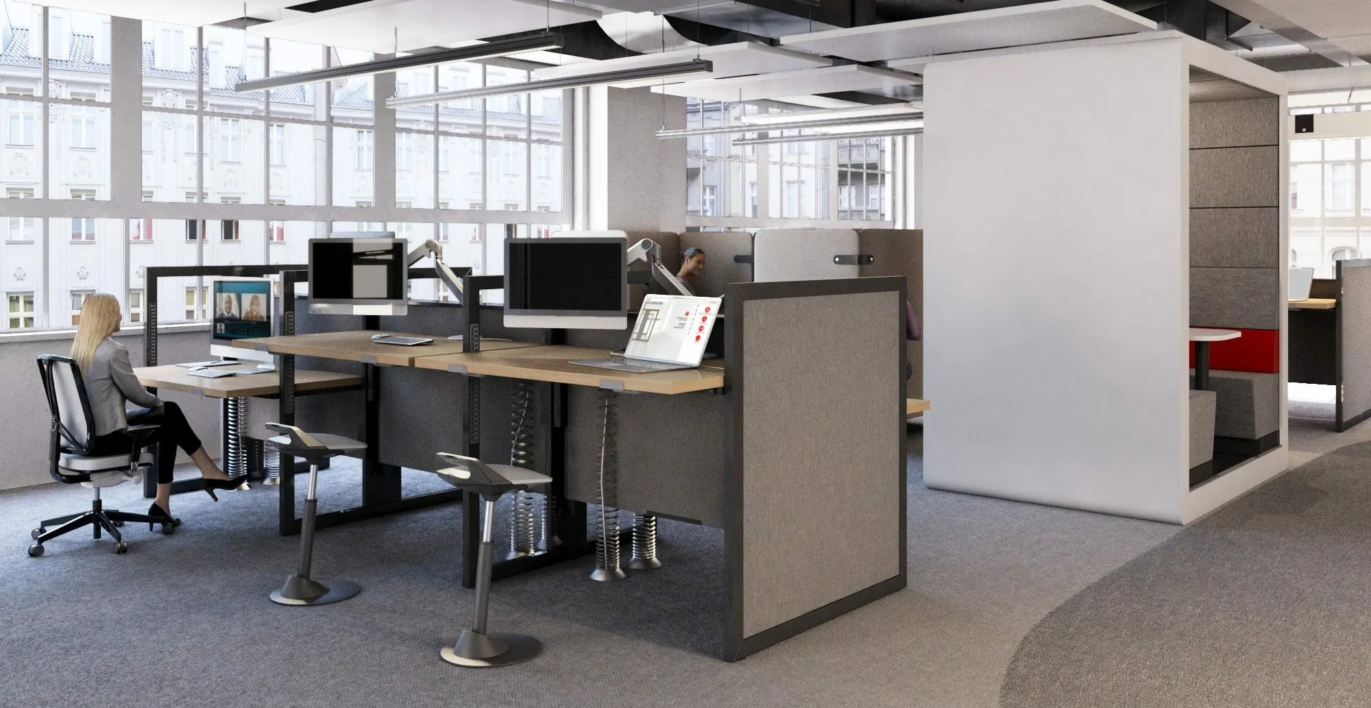 De Mikomax Stand Up R heeft een uniek en modern design, volledig aan te passen naar eigen smaak met de vele mogelijkheden en combineert de individuele werkruimte en de teamwerkruimte met één oplossing