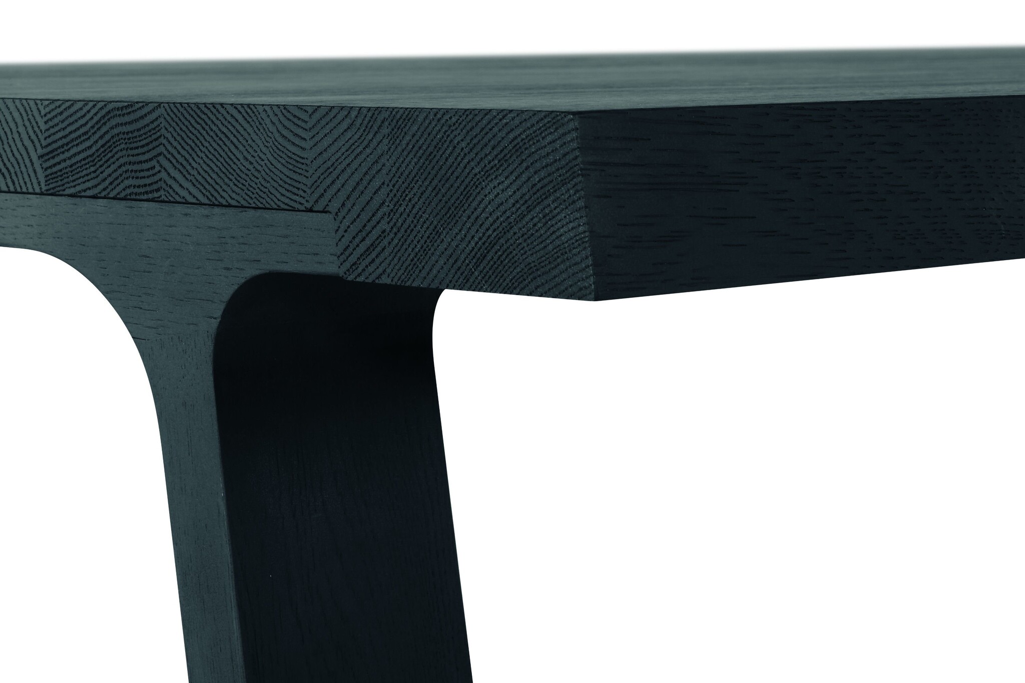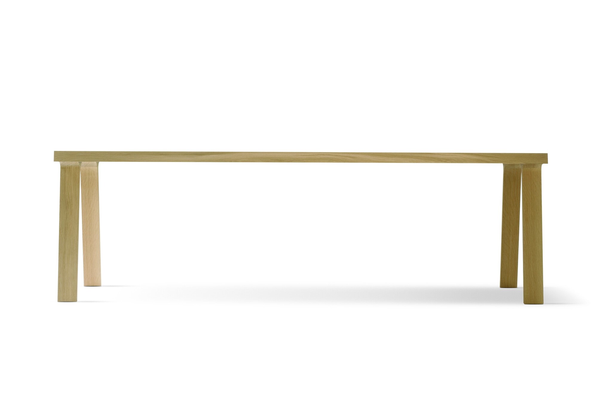 Het massieve, rechte blad van geborsteld sierlijke schraagvormen die ook van massief eikenhout zijn.