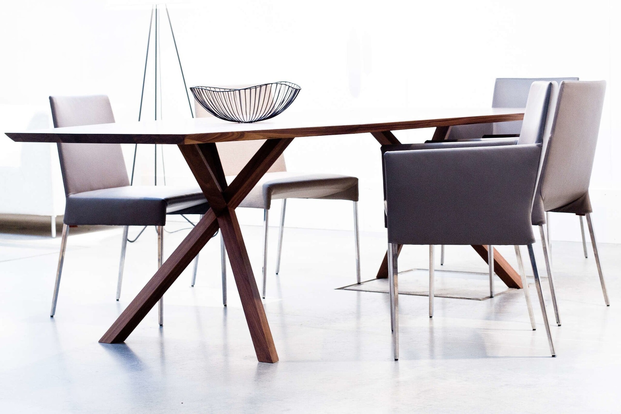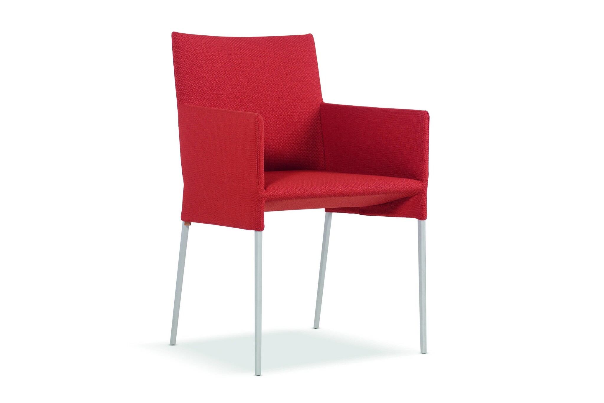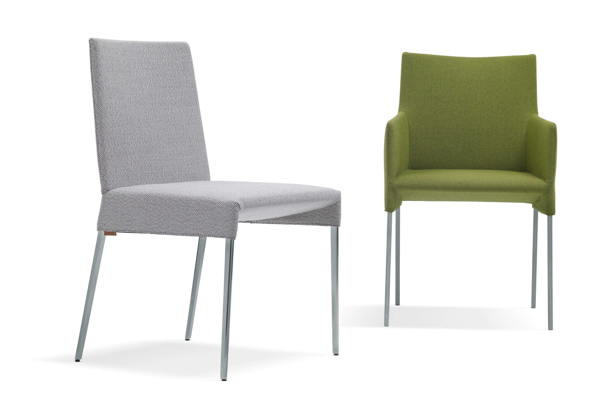 Mila A, een bredere eetkamerstoel met rechte rug en armleuningen;