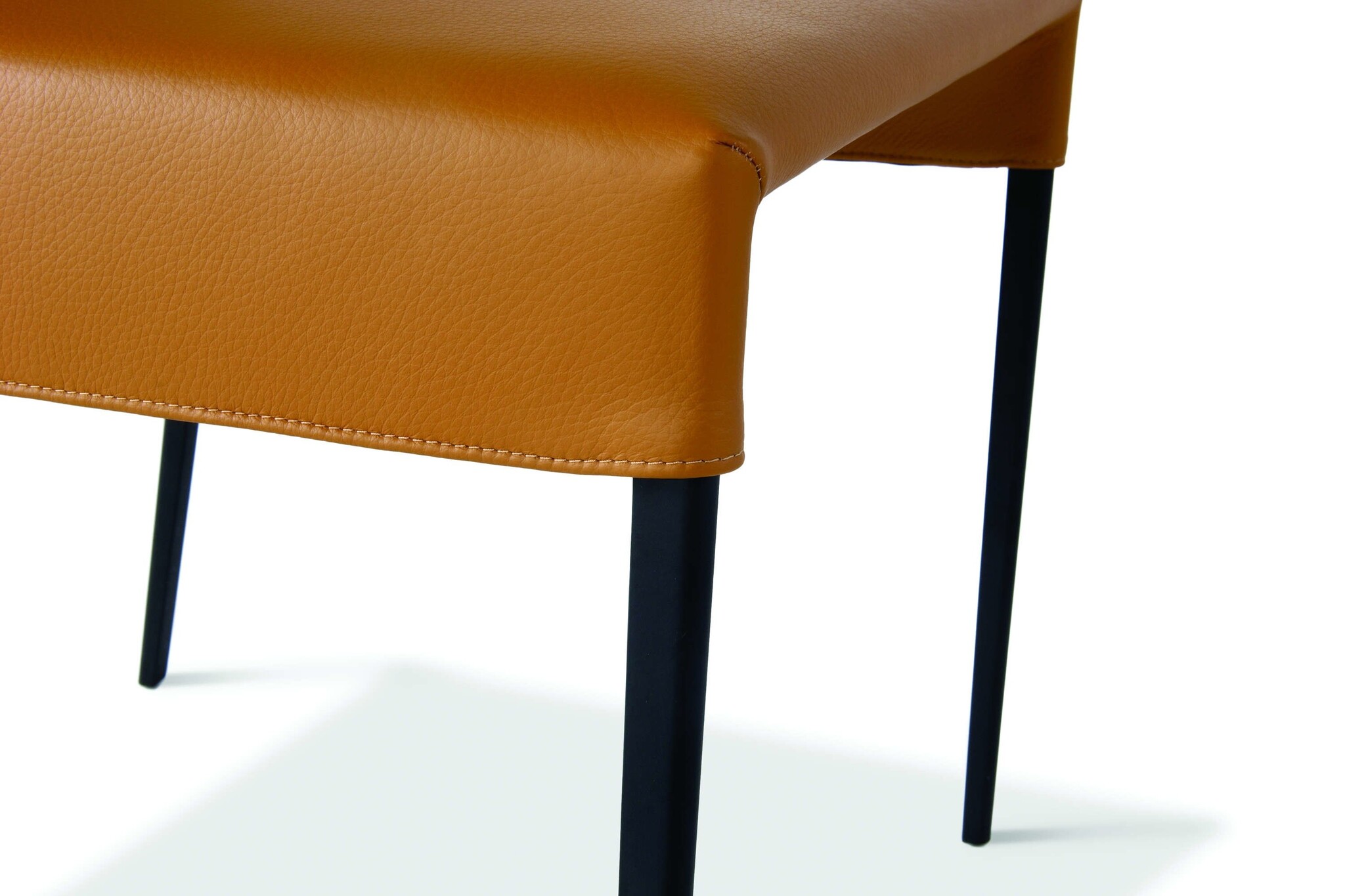 Mila B, een bredere eetkamerstoel met rechte rug zonder armleuningen.