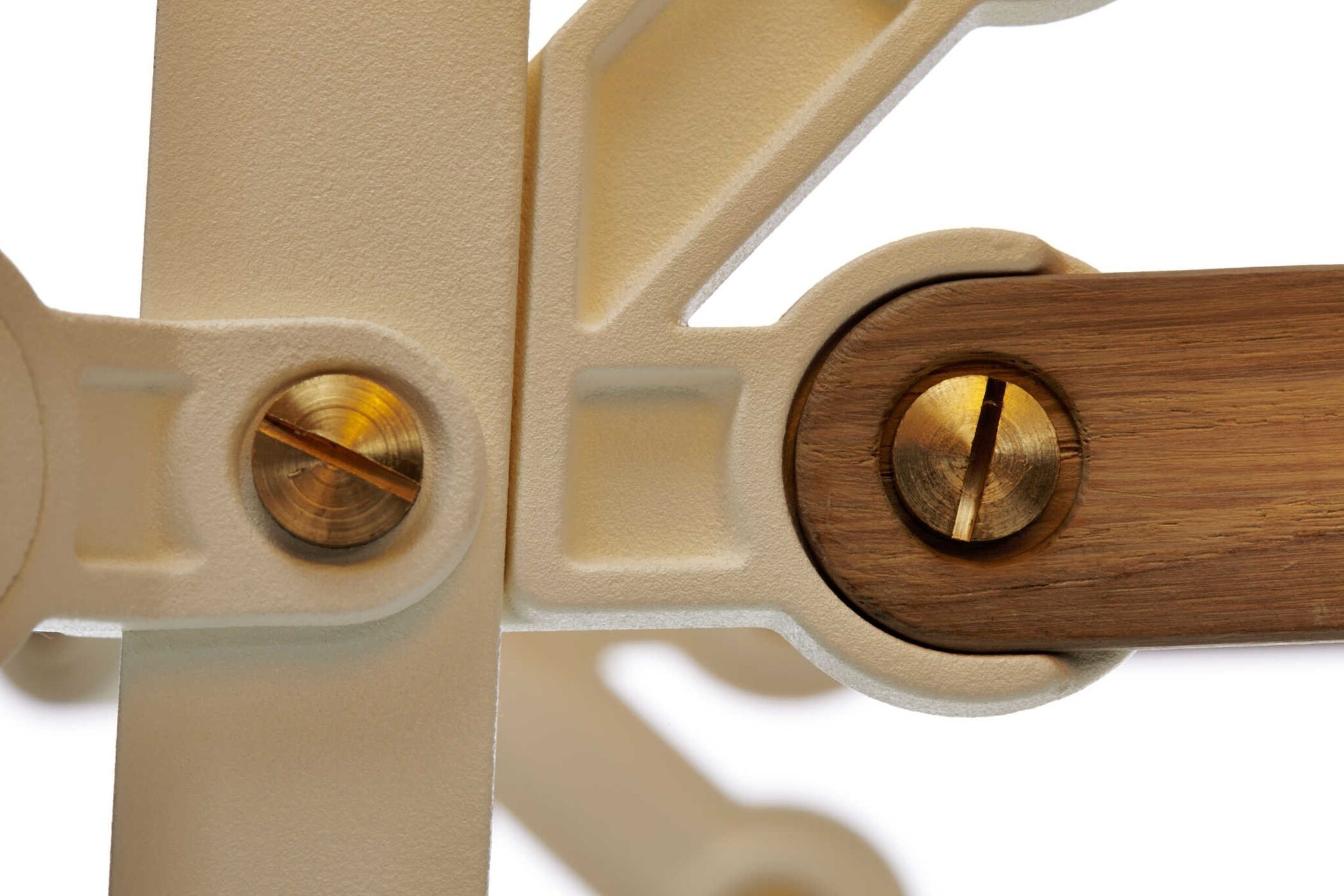 Het materiaal van deze lamp betreft poedercoated aluminium, maar ook is er een versie waarbij hout gebruikt is.