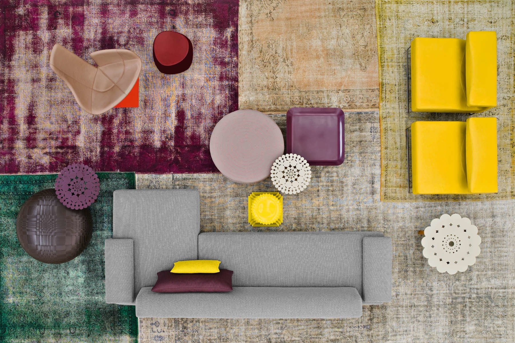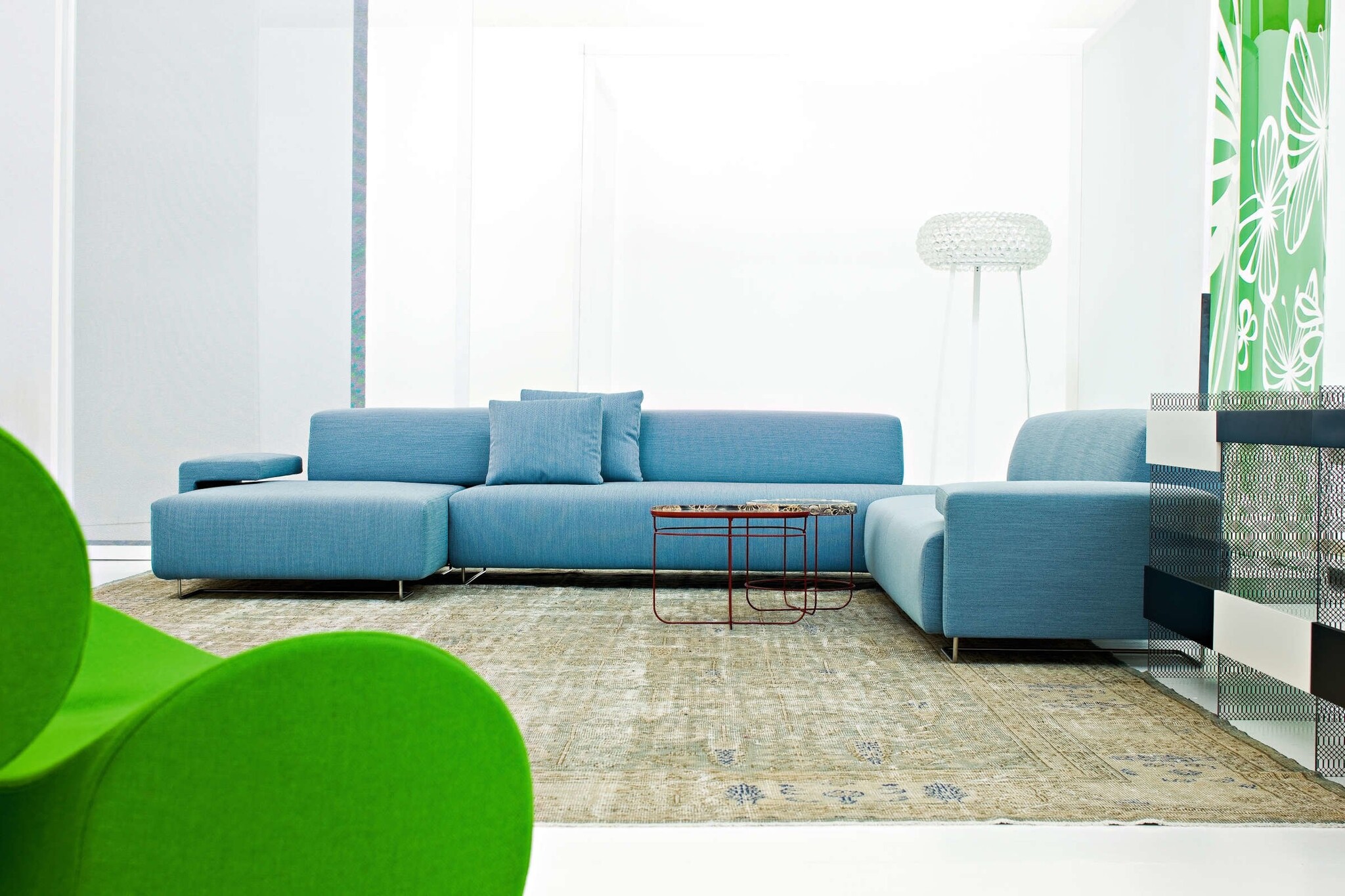 Moroso Lowland een elegante bank die bestaat uit een breed palet aan basiselementen. De elementen kunnen elke denkbare bank vormen. De bank heeft een structuur van foam en staat op roestvrij stalen poten, met stoffen bekleding. De Lowland is door Patricia Urquiola ontworpen voor Moroso.
