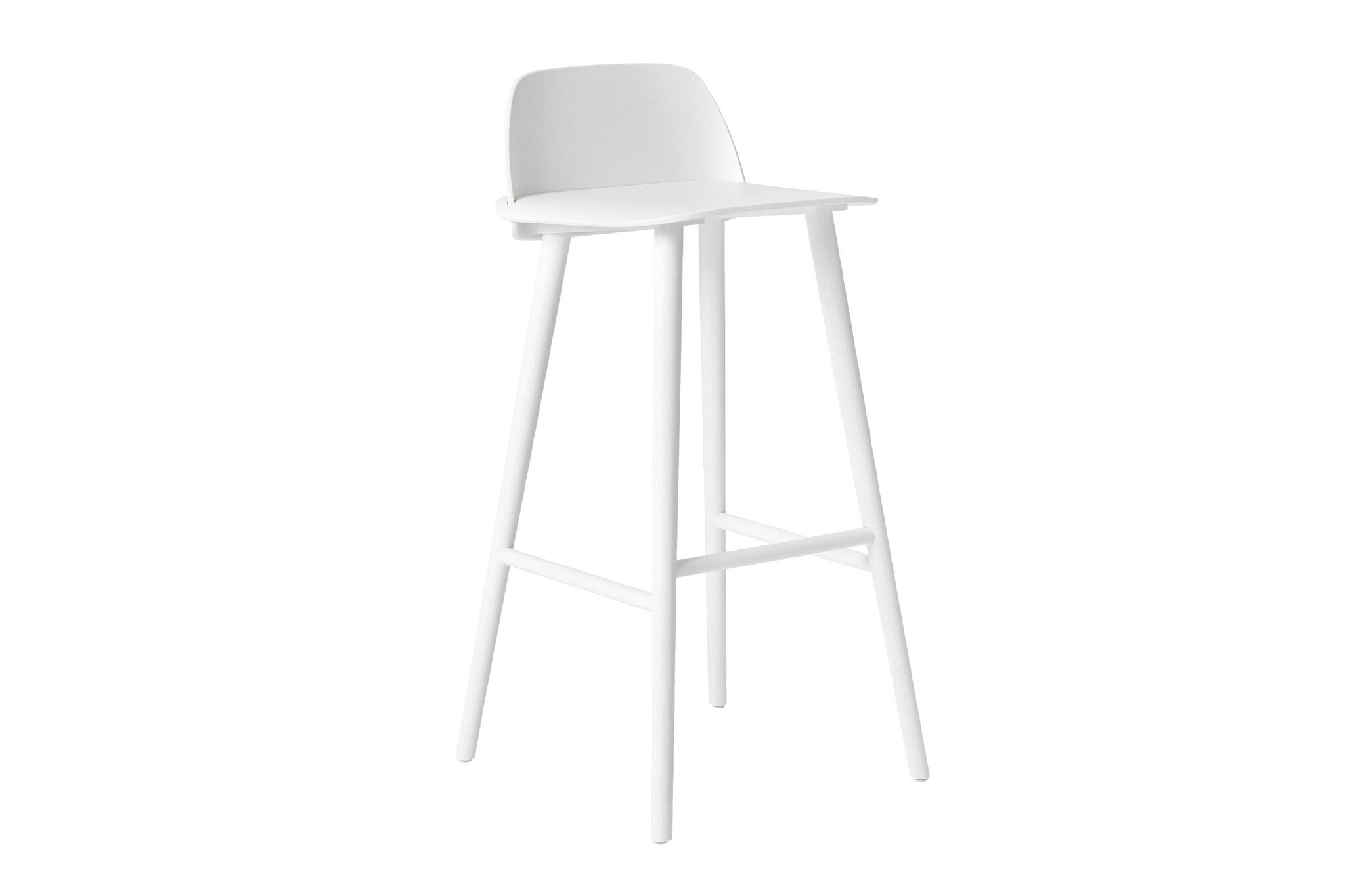Tijdens de Salone del Mobile meubelbeurs in Milaan in april 2016 is er een nieuwe kleur toegevoegd aan de Muuto Nerd barkruk: wit.