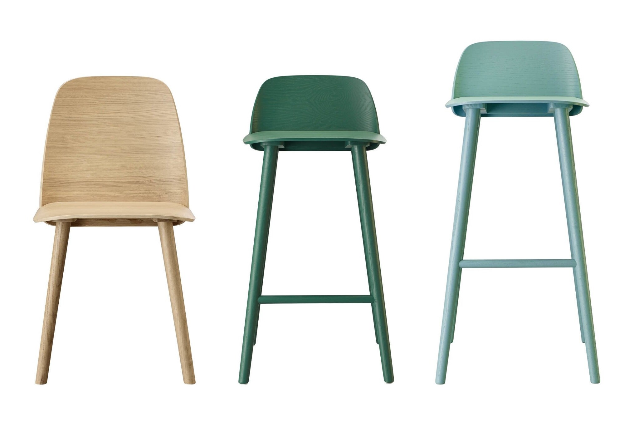De vorm van Nerd barkruk nodigt de gebruiker te zitten op de kruk vanuit verschillende invalshoeken, geholpen door de zachte, bochtige multiplex zitschaal. De lage rugleuning van de barkruk geeft een prettige ondersteuning en comfort. Gebruikt materiaal van de Muuto Nerd barkrukken: natuurlijke eiken of gelakt essenhout en leverbaar in de volgende kleurenopties: natuurlijke eiken, grijs, aardolie, groen, roze, rood, zwart.
