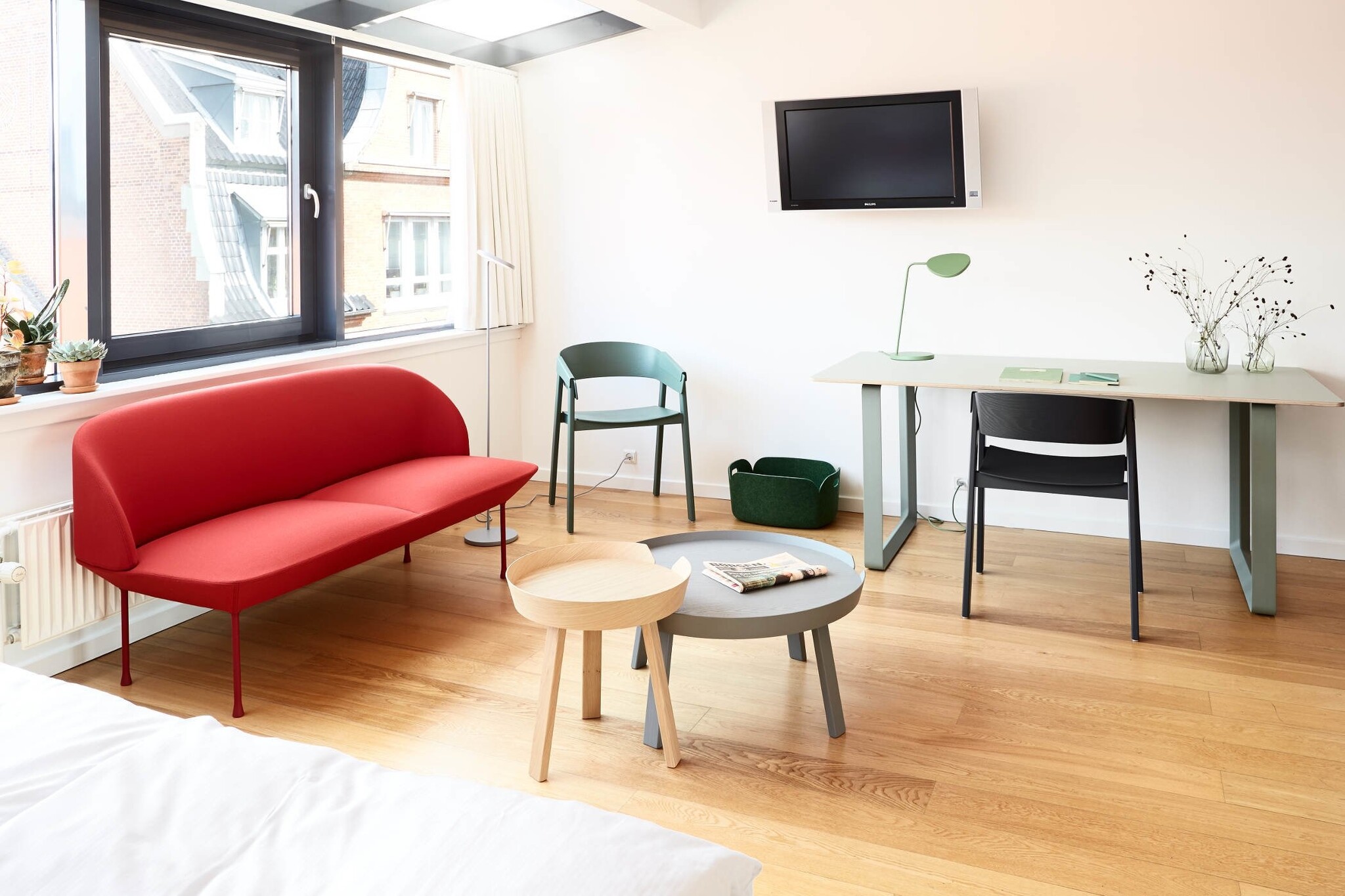 De Muuto Oslo fauteuil is geproduceerd in Noorwegen en gestoffeerd in Denemarken. Er is keuze uit verschillende kleuren stof uit de collectie van Kvadrat. De schaal is gemaakt van gegoten schuim. De fauteuils passen goed in een receptie, in een lounge of in een lobby van het hotel. Afmetingen Muuto Oslo