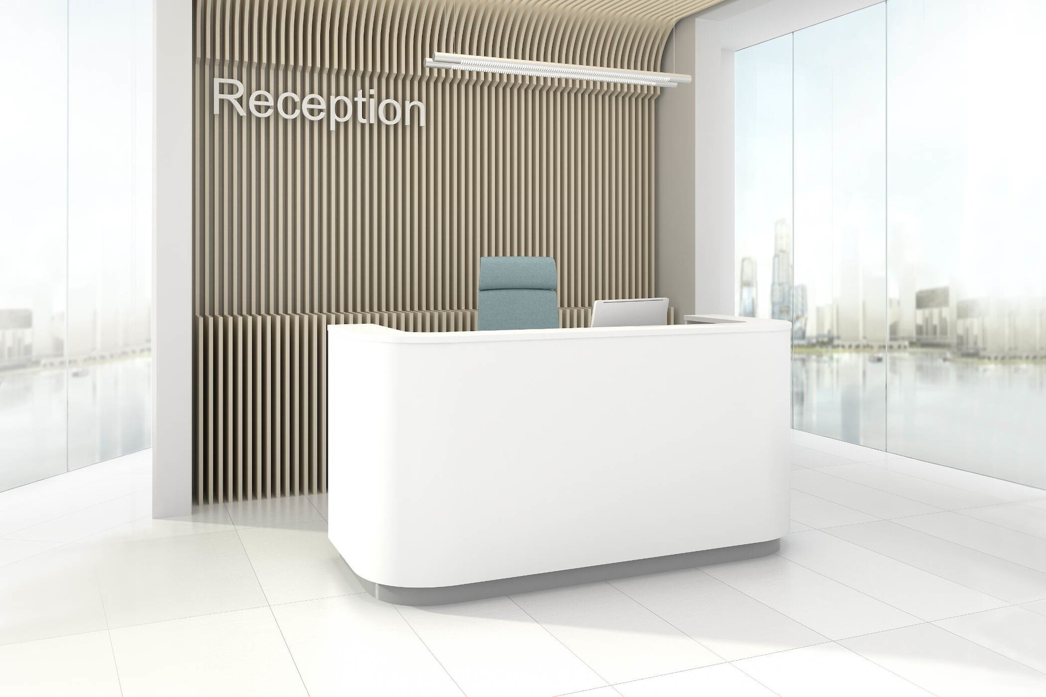 Het is een balie en werkplek in één: receptie-unit met desk om aan te kunnen werken.