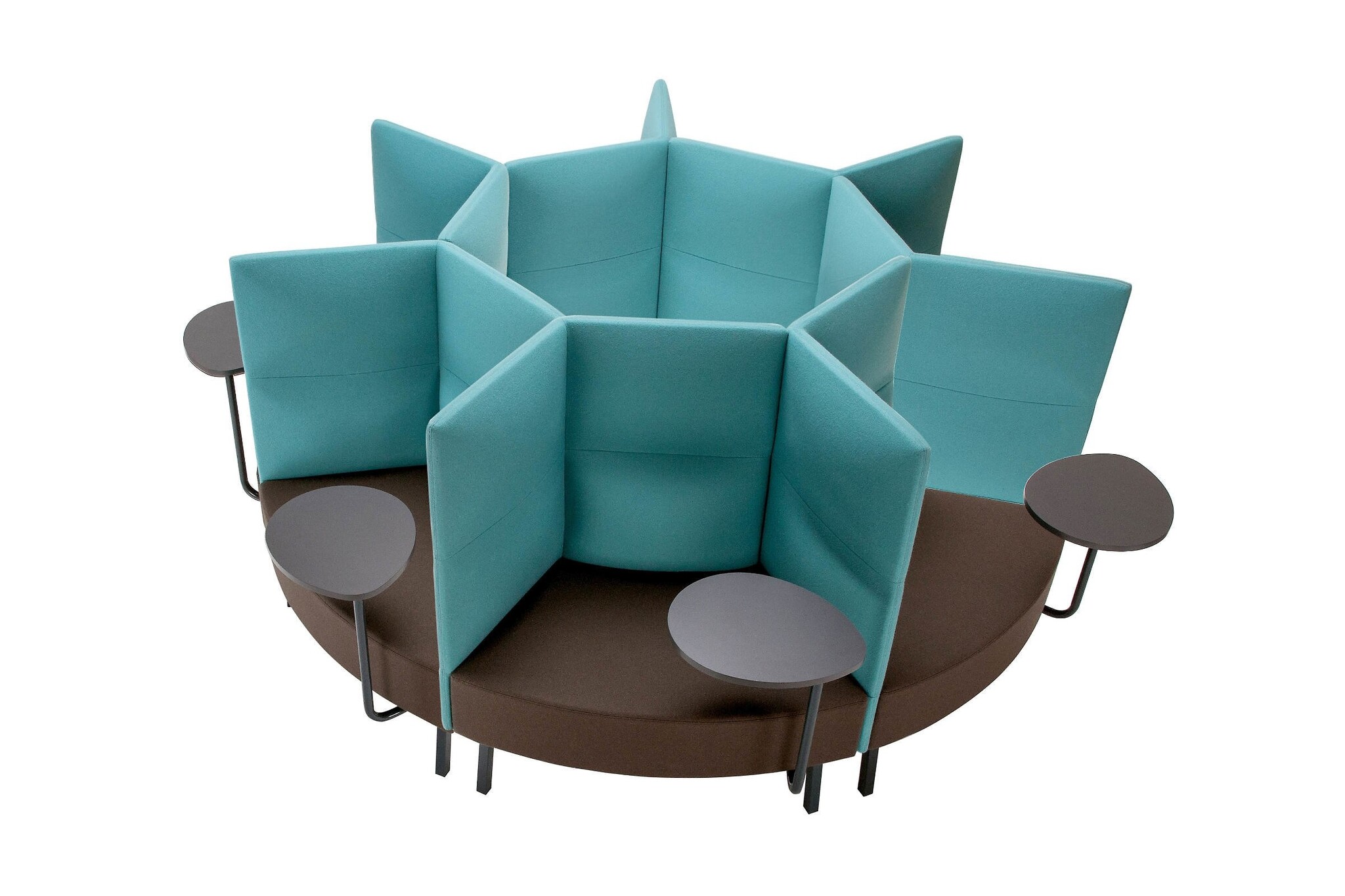 Zo is de Narbutas Cumulus inzetbaar als werkfauteuil of werkbank die in een lobby of centrale hal te gebruiken is.