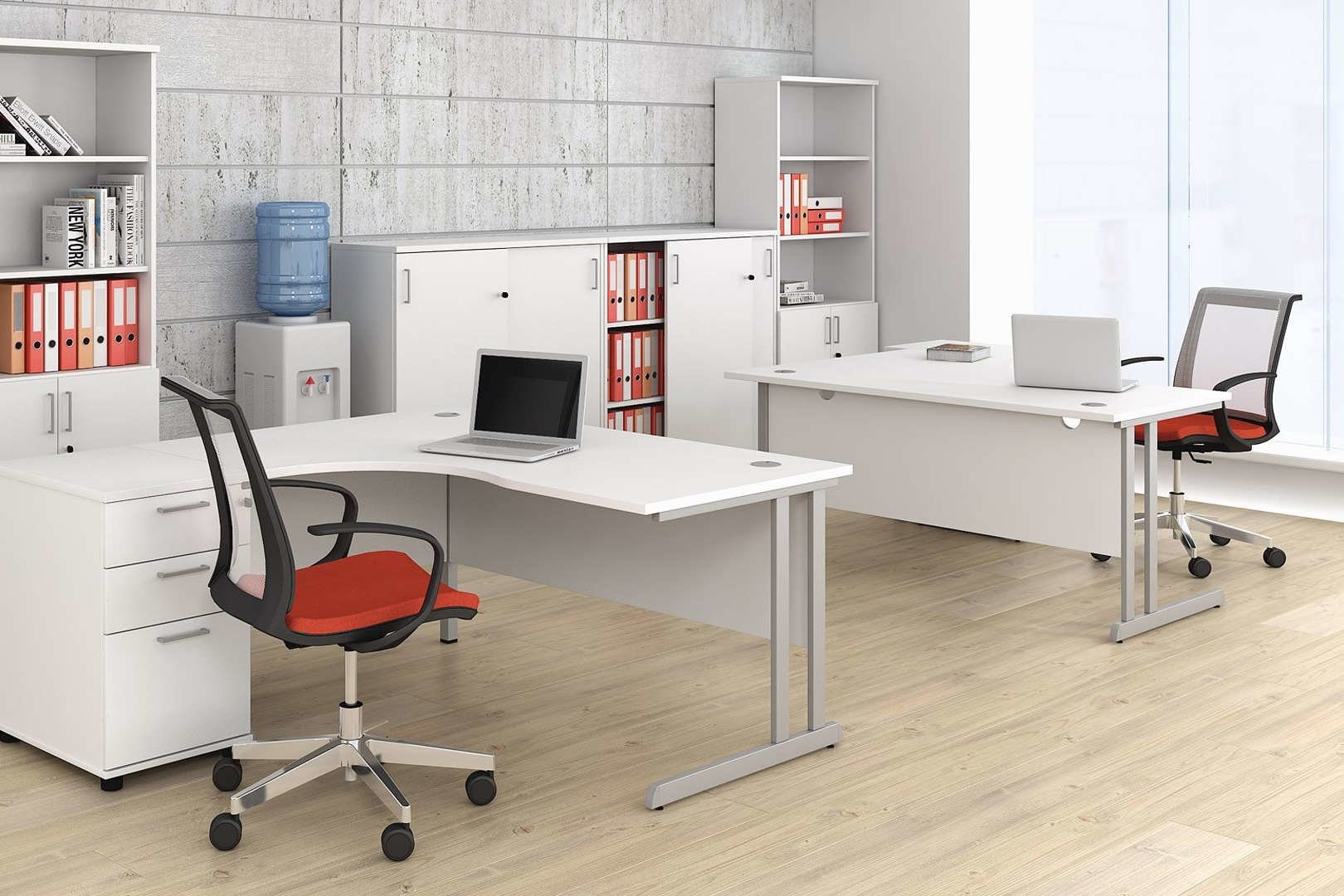 Lendensteun: in hoogte verstelbaar, gemaakt van wit of zwart plastic (bureaustoel).