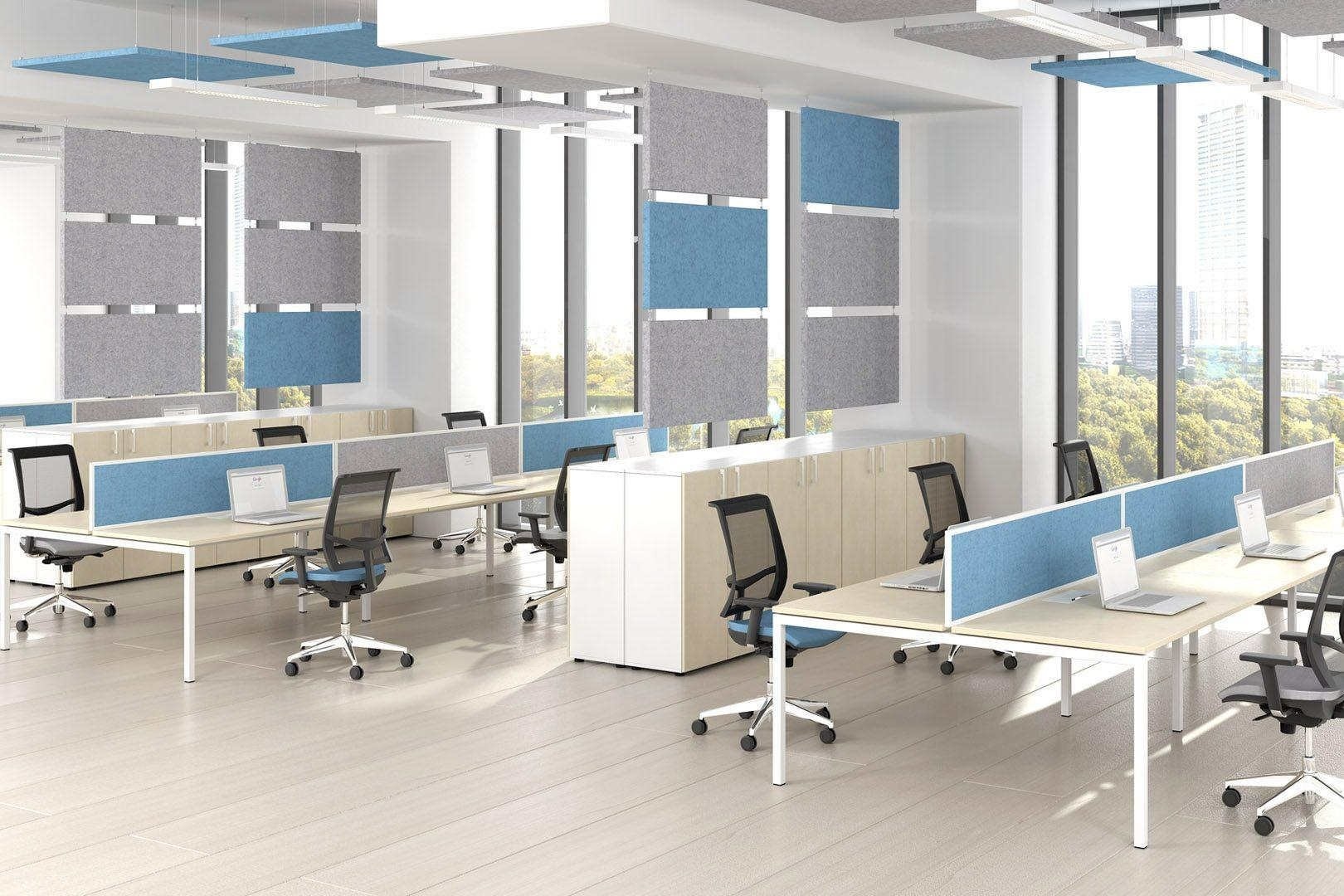 Akoestische panelen zijn de moderne manier om het geluidsspectrum te verminderen. Met behulp van dit systeem kunnen de arbeidsomstandigheden en de kwaliteit van het moderne kantoor worden geoptimaliseerd (effectieve geluidsabsorptie, zonesverdeling, visueel aantrekkelijke binnenafwerking).