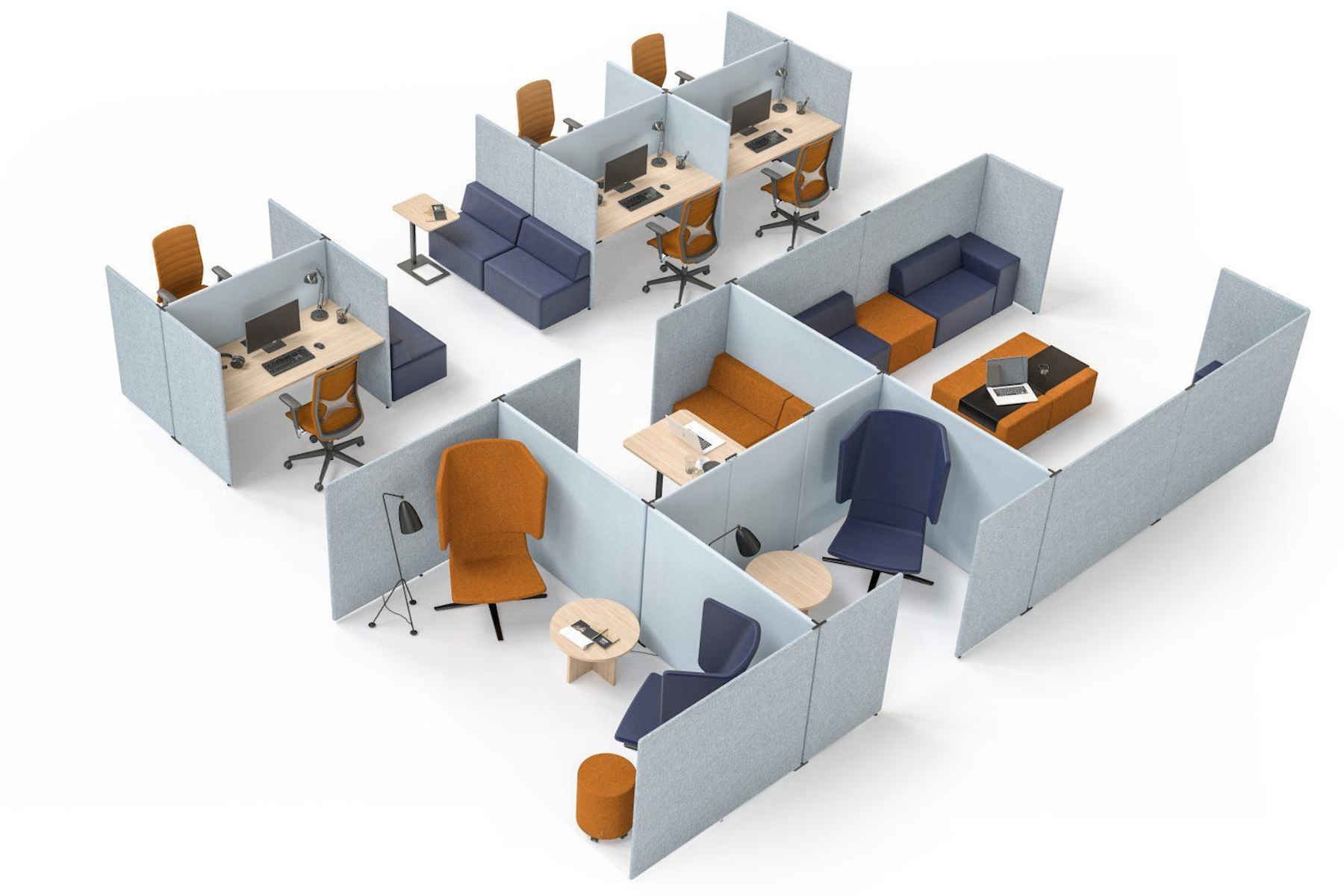 Moet u individuele werkplekken scheiden of verschillende functionele gebieden in één ruimte indelen? Dan is het handig om te weten dat met de Narbutas My Space u eenvoudig met slechts drie soorten akoestische schermen u alle kanten op kunt. Deze schermen passen zich snel aan de veranderende behoeften aan en zijn eenvoudig te monteren en demonteren.