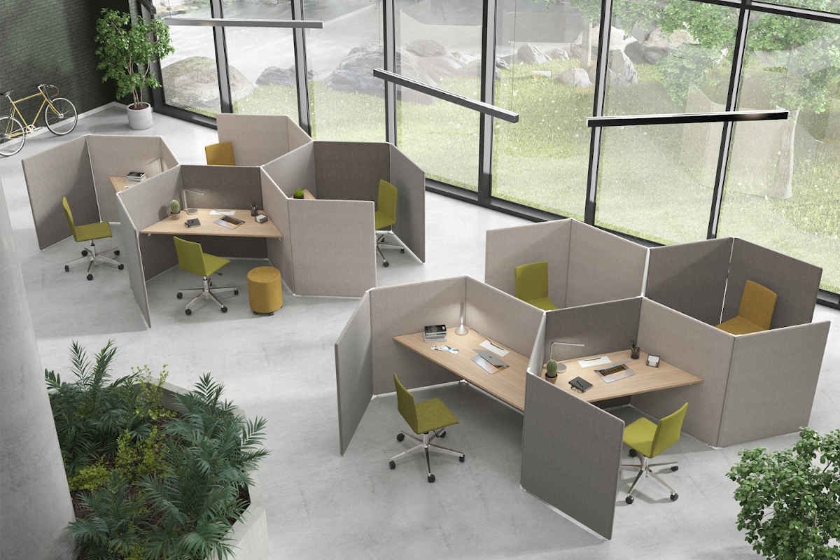 Door de grote verscheidenheid aan akoestische schermen kunt u uw eigen creatie maken en uw ruimte indelen met de Narbutas My Space.