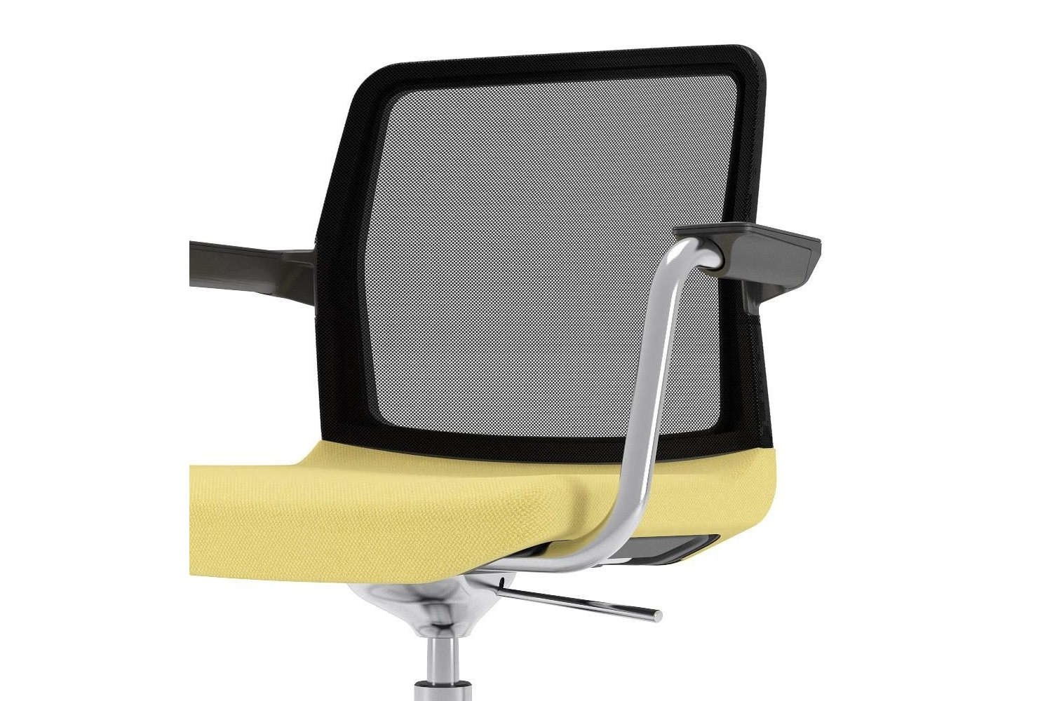 De rugleuning met flexibel gaas past zich gemakkelijk aan de natuurlijke vorm van de gebruiker aan. Het ademende mesh-materiaal zorgt de hele dag voor comfort, ongeacht welke zitpositie er gebruikt wordt.