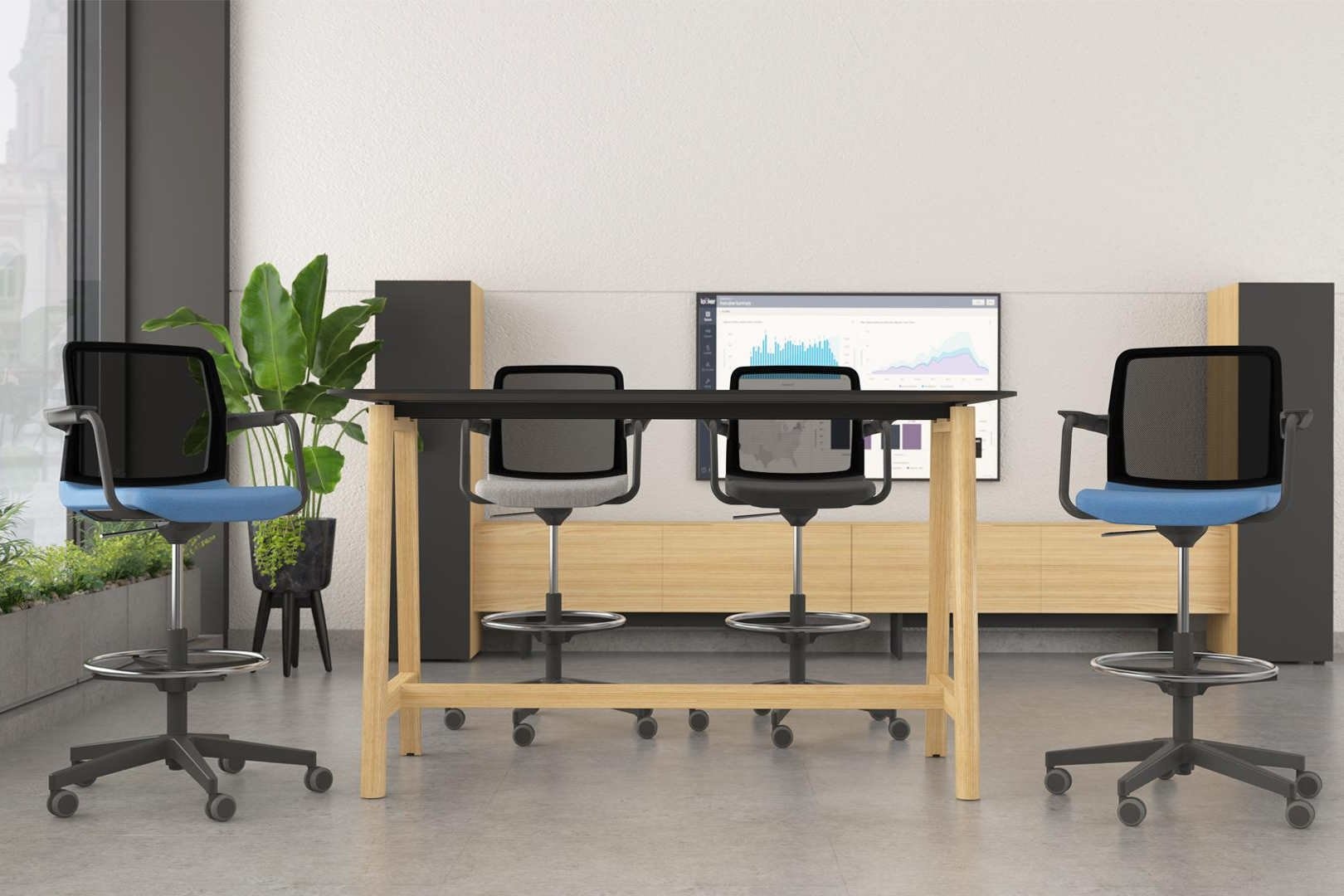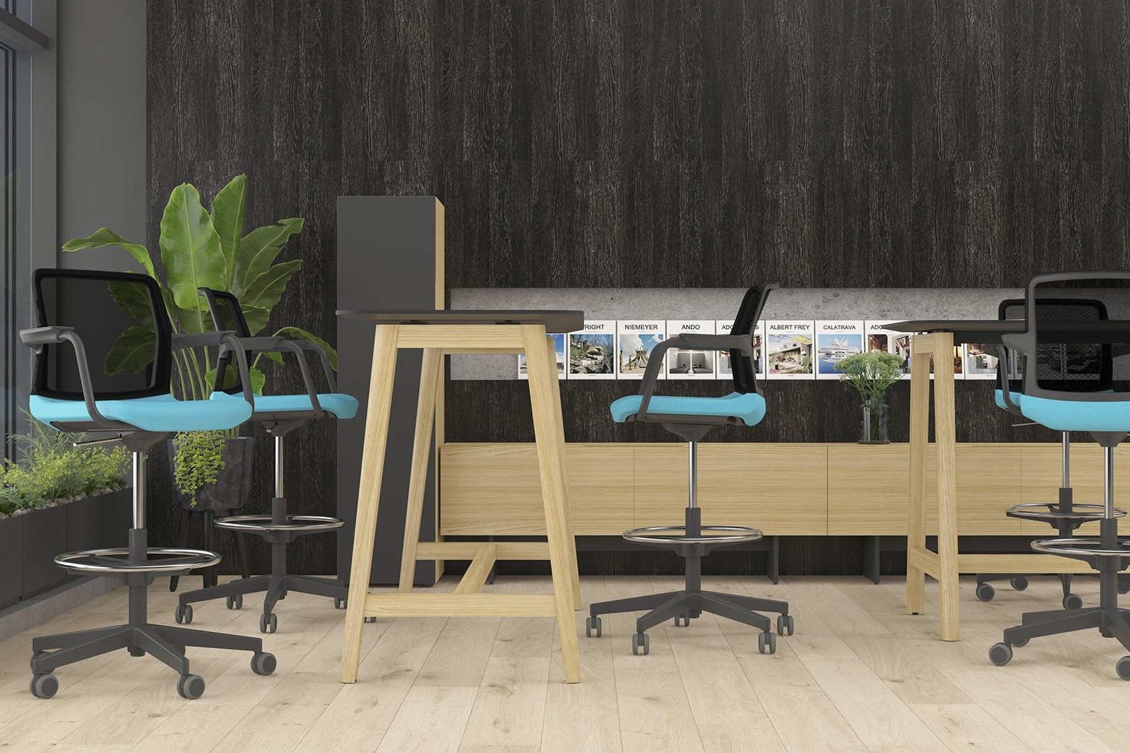 De Narbutas Wind Low-back stoel kan worden toegepast aan een verscheidenheid van werkplekken, of het nu gaat om een zit-sta bureau, een hoog bureau of aan de receptie. Over Narbutas Wind Low-back stoelen