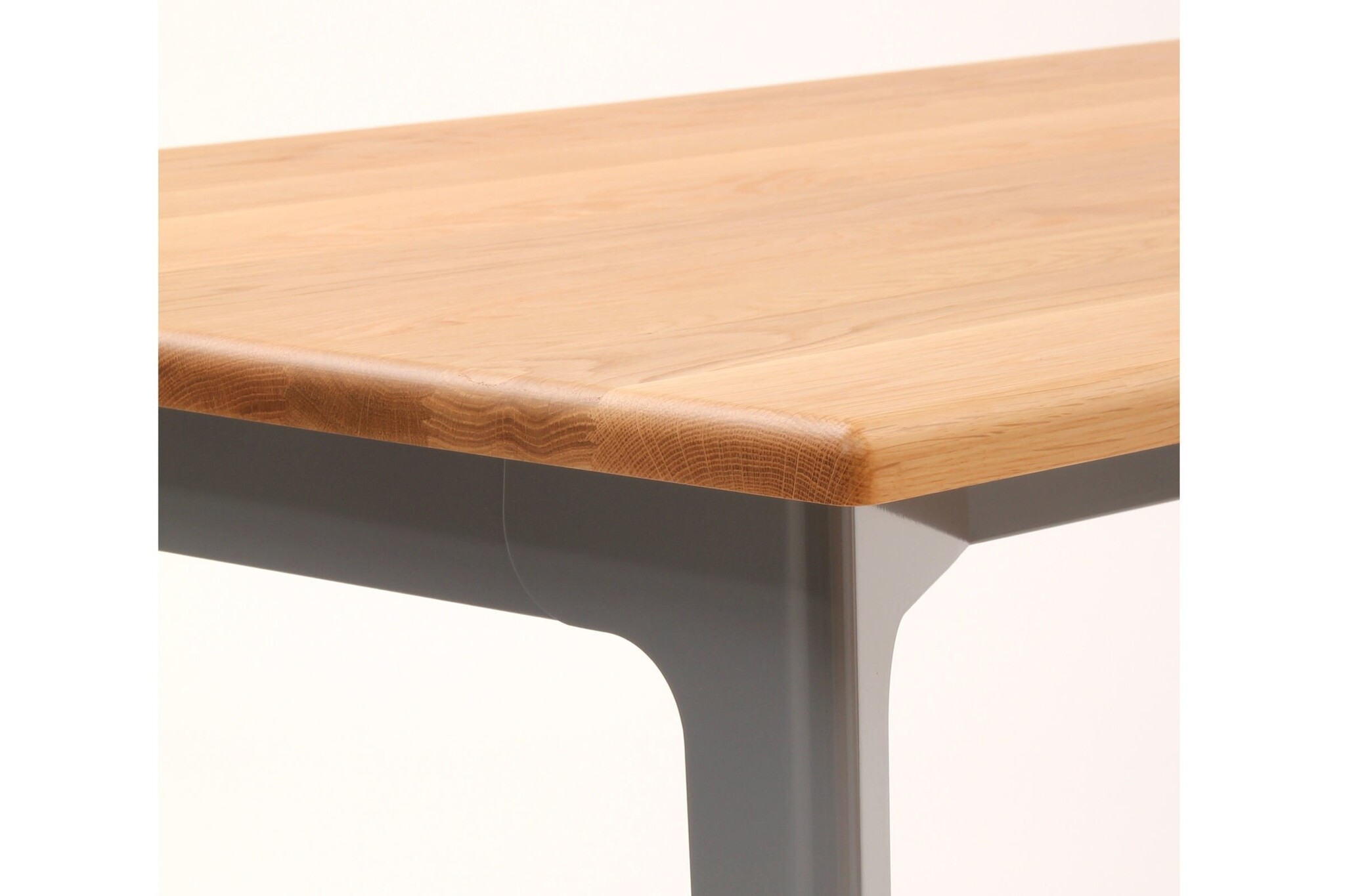 Het stalen frame wordt zorgvuldig geproportioneerd en afgewerkt. Het frame heeft een oppervlak van slijtvast polyester poedercoating en er is keuze in het tafelblad om zo de eigen unieke kenmerken af te laten stemmen met de behoefte.