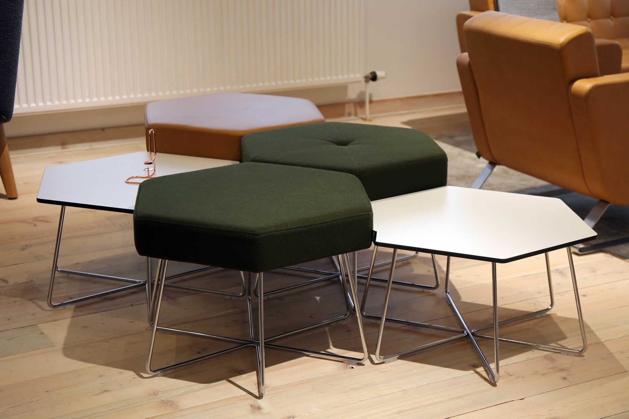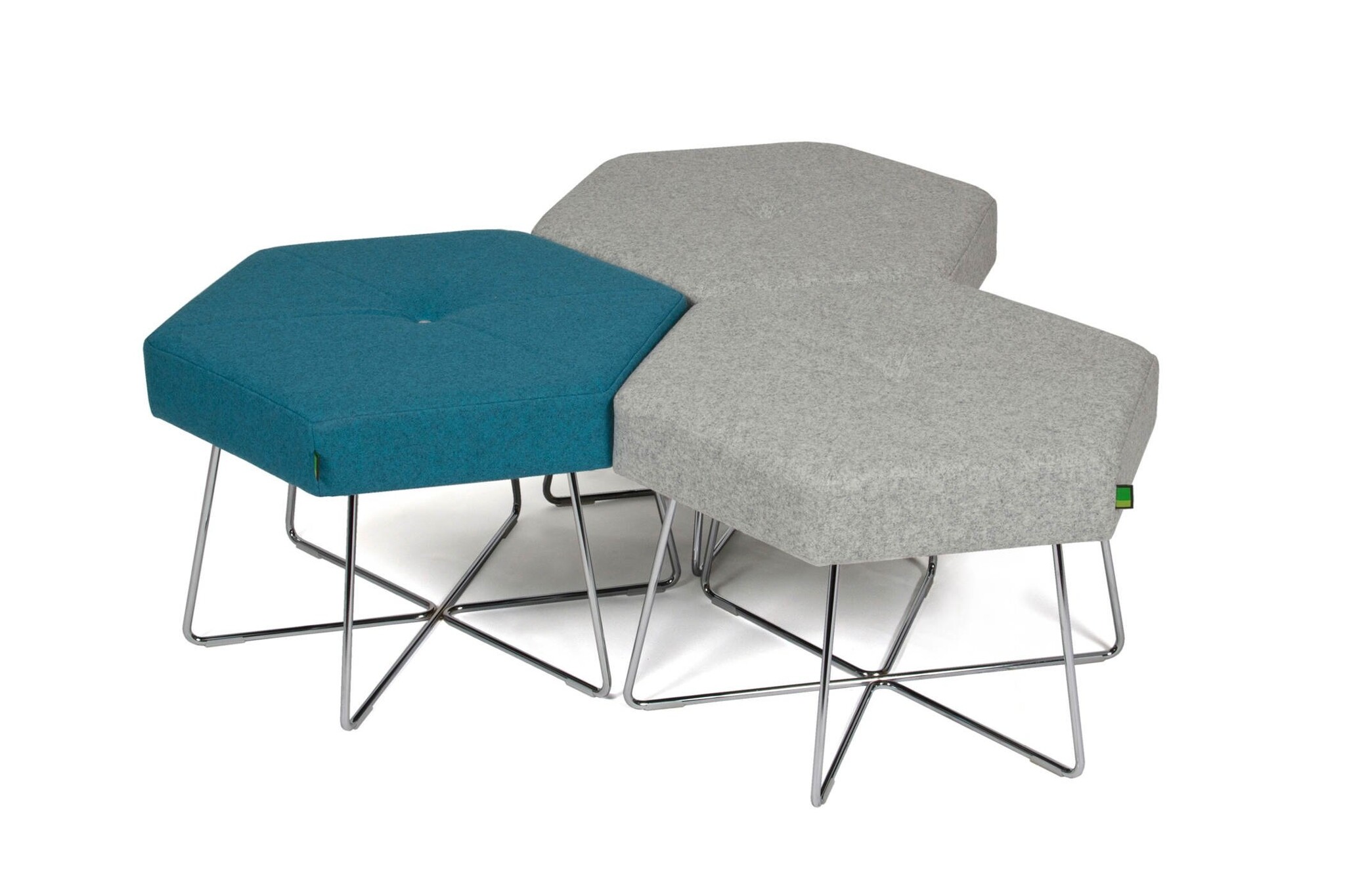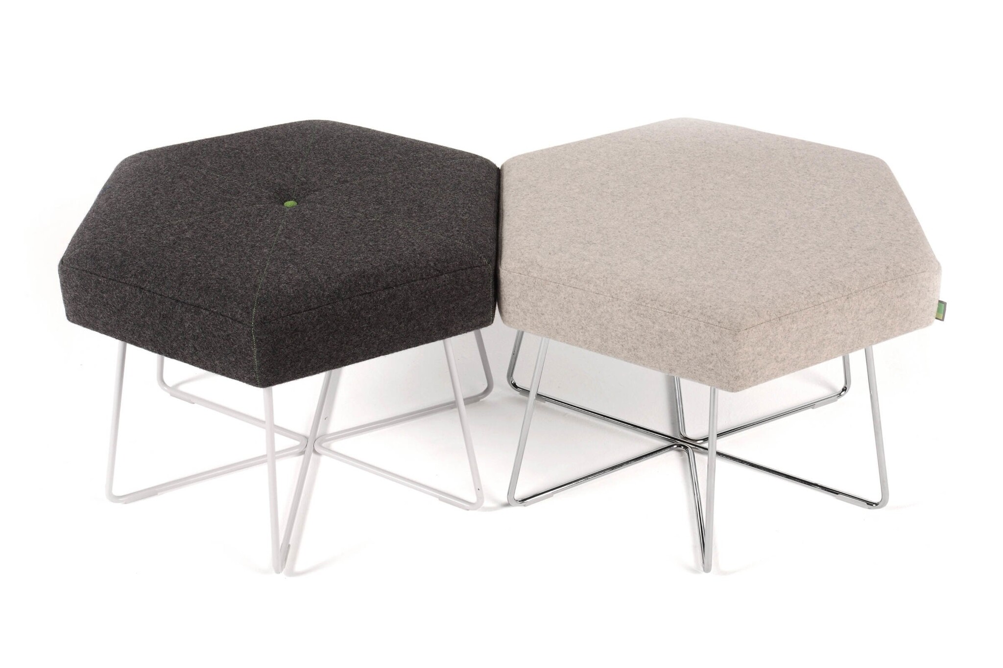 De Naughtone Pollen is een tafel of poef gemaakt in de vorm van een hexagon. Deze kan in herhalende vorm worden gebruikt in zowel kleine groepen, rechte lijnen, bochten of verscholen in hoeken. Dit maakt Pollen een echt dynamische poef en tafel voor elke zakelijke, publieke of educatieve ruimte. De tafels en stoelen gebruiken dezelfde basis, zodat ze mooi bij elkaar passen. Gebruikte materialen Nauhtone Pollen