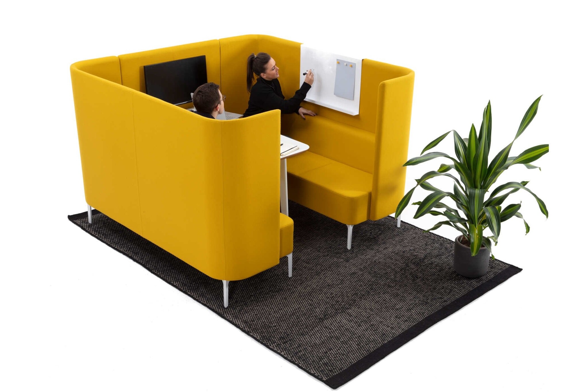 De Naughtone Pullman Booth is een akoestische werkruimte om samen te werken met meerdere personen zonder anderen tot overlast te zijn. Ideaal als ruimte in een kantoor te plaatsen. Kenmerken van de Naughtone Pullman Booth
