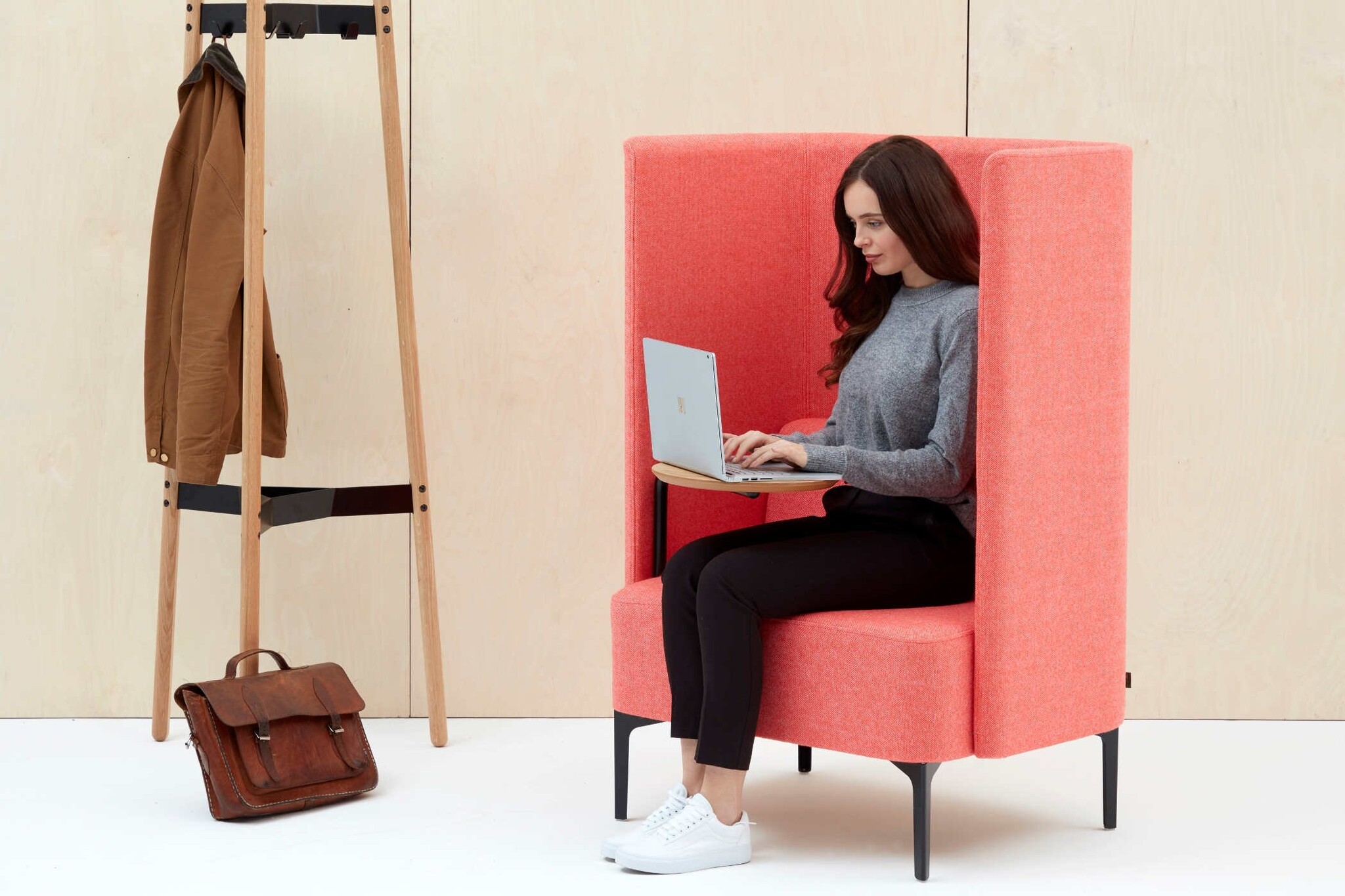 De Naughtone Pullman Chair maakt deel uit van het bredere assortiment Pullman-producten met hoge rugleuning. Deze Pullman Chair is een stoel voor één gebruiker die fungeert als een akoestisch toevluchtsoord voor individueel werken of om je even terug te trekken. Eigenschappen van de Naughtone Pullman Chair