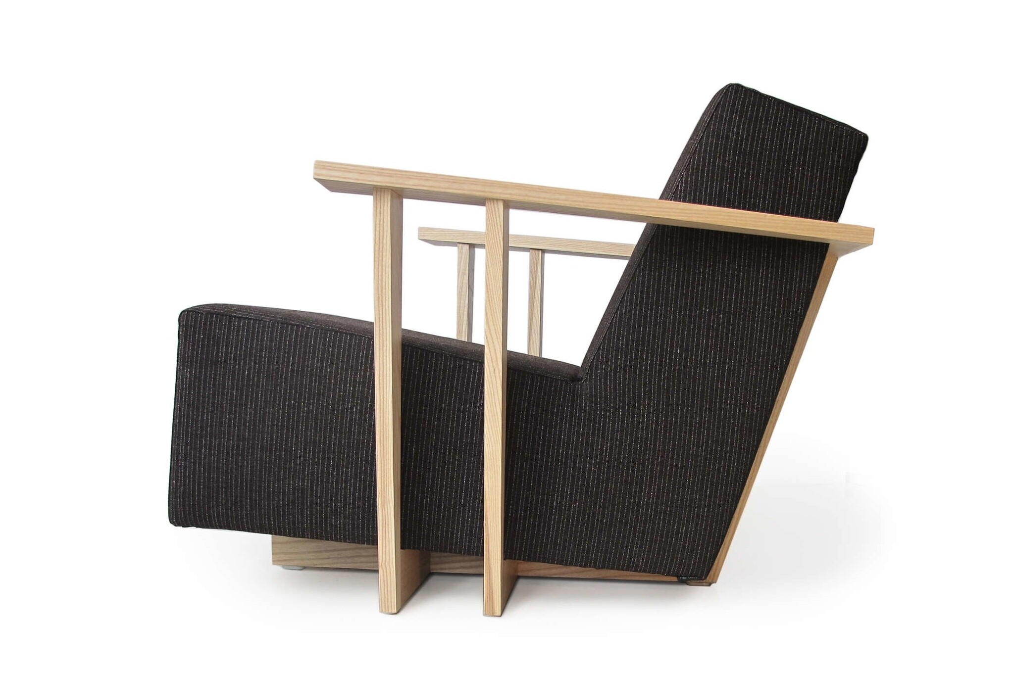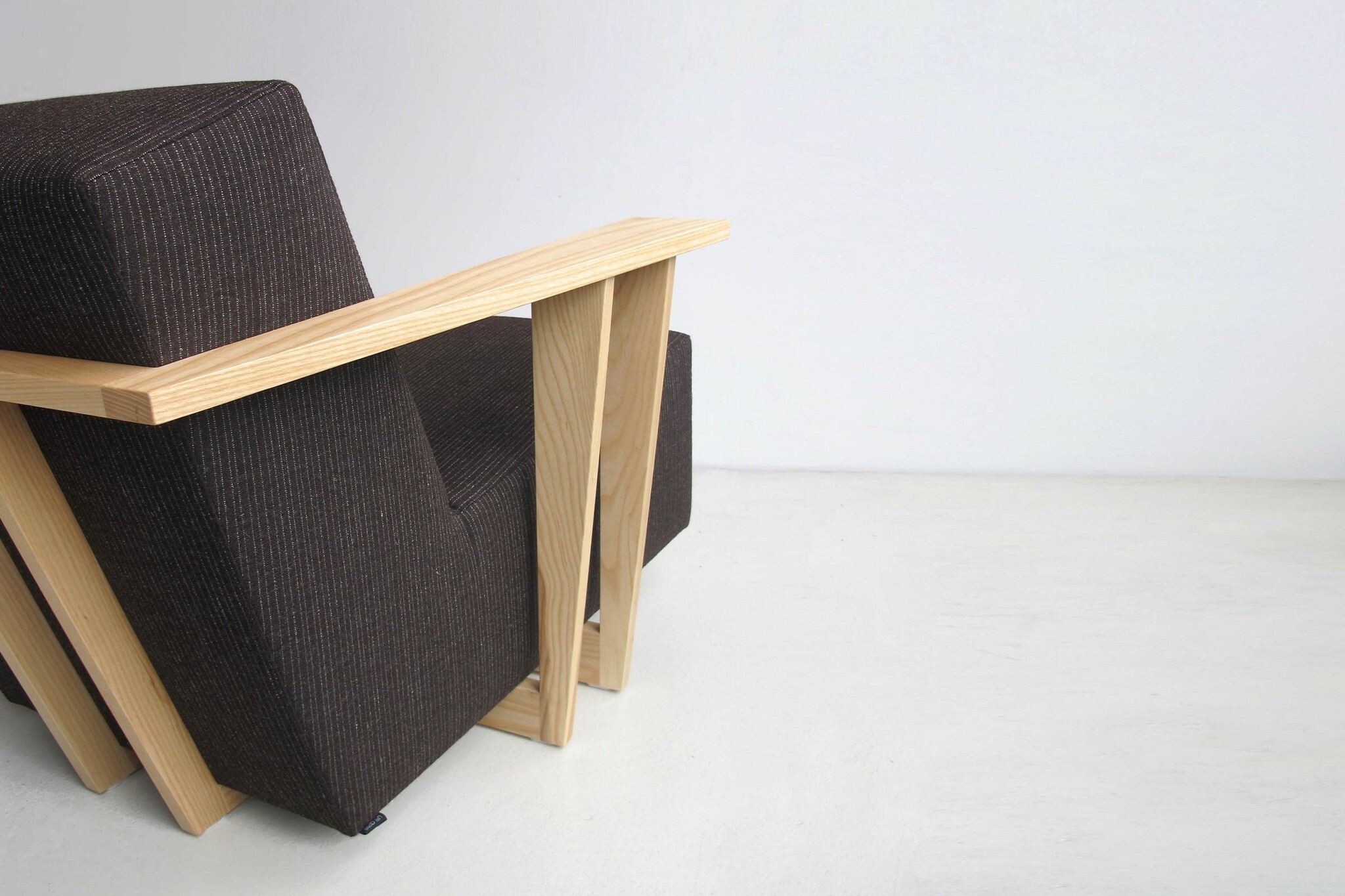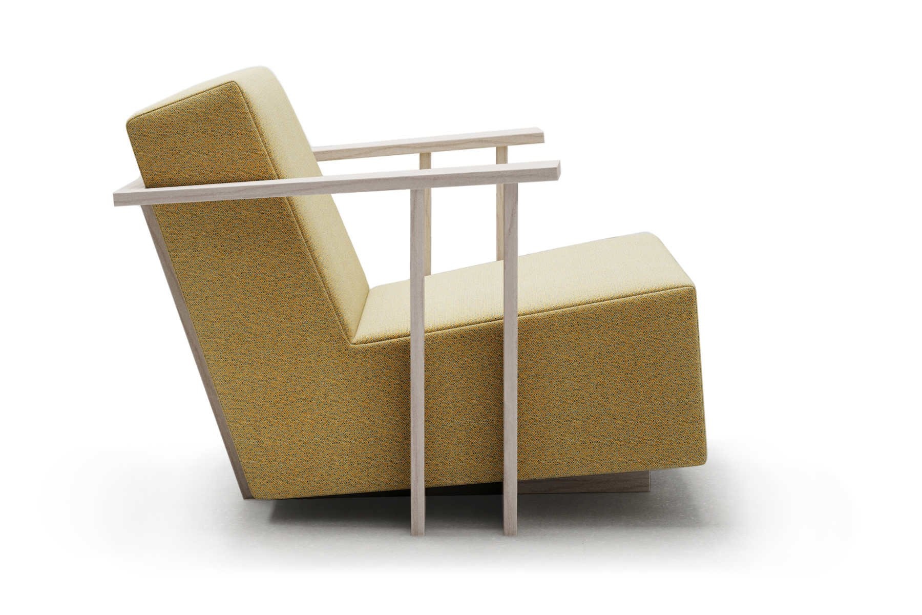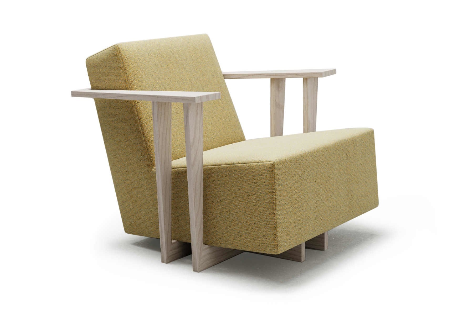 Het frame van de F2 fauteuil van Neil David is gemaakt van massief essenhout en kan afgewerkt worden met mat blanke lak, een zijde glans lak of beits. De rug en zitting zijn gestoffeerd uit één hoes en kan worden geleverd in een rekbare stof in verschillende kleuren. Deze strak vormgegeven loungefauteuil past mooi in een entree, lobby of wachtkamer. Samen met de bijzettafelserie van Neil David, de BT2, BT3 en BT4 geeft dit samen een speels effect.Afmetingen van de Neil David F2 fauteuil