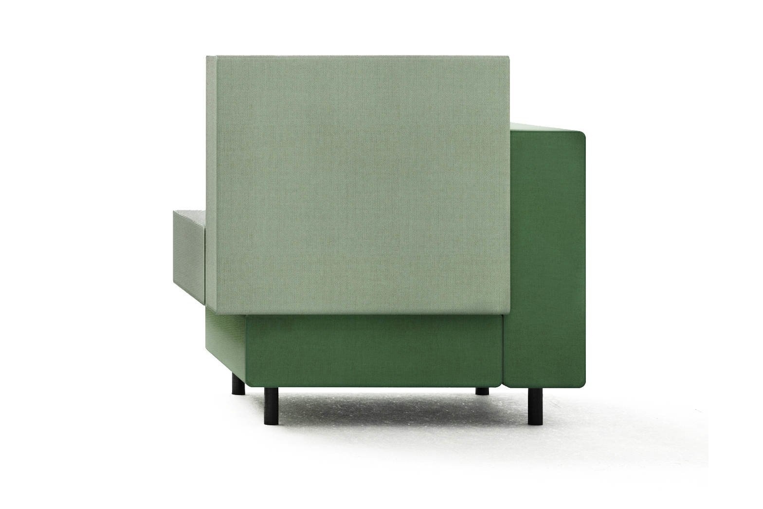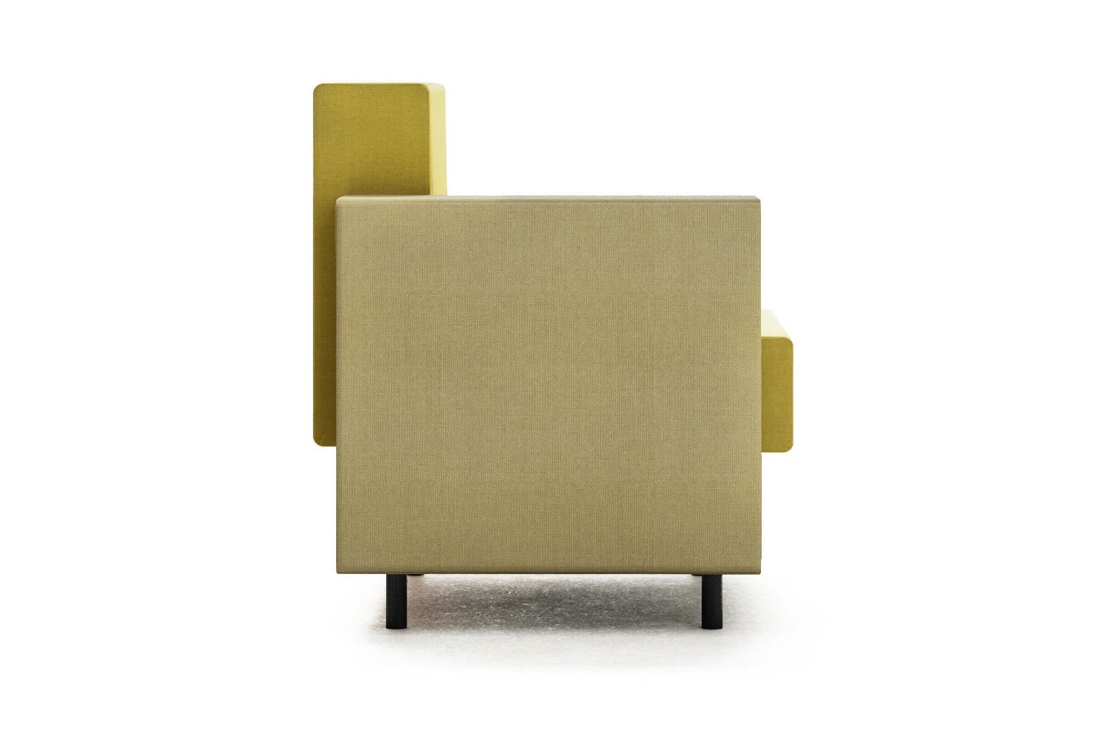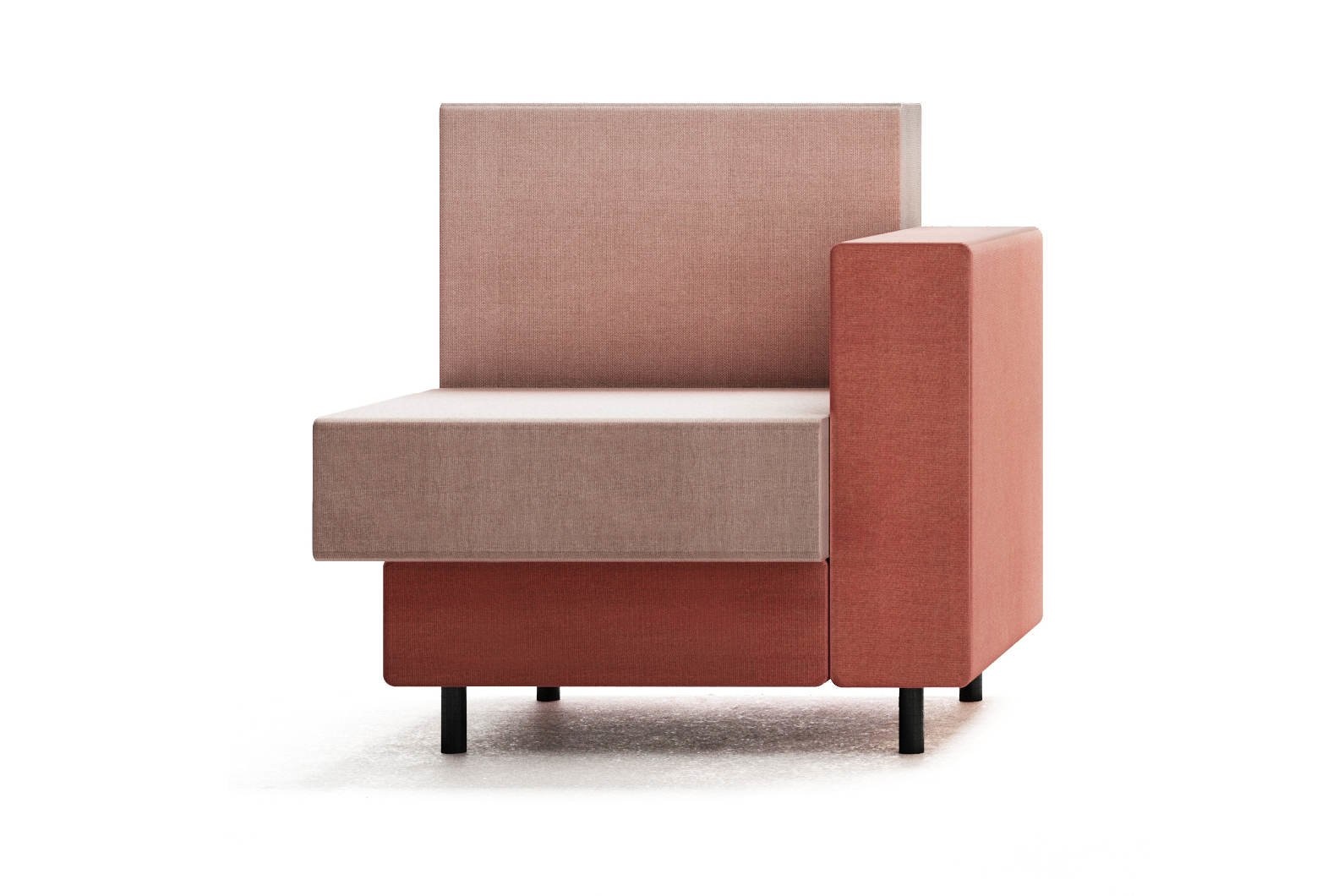 Deze fauteuil bevat 2 elementen die in de vorm van een L zijn gemaakt. Deze twee L-vormen zijn op elkaar gestapeld en vormen zo een geheel.