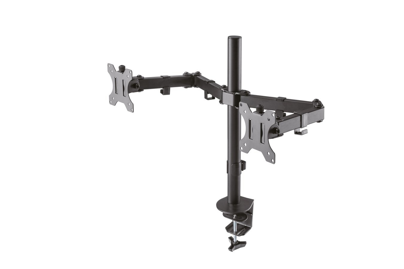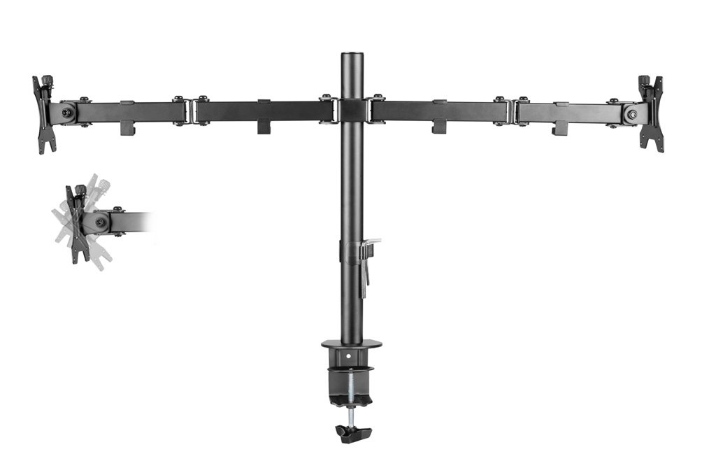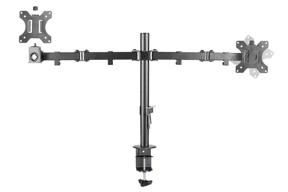 Beschikbaar voor 2 beeldschermen van 254 tot 812,8 mm. Alleen in het zwart is deze monitorarm verkrijgbaar. Het maximale gewicht wat deze monitorarm kan dragen is 16 kilo in totaal (8 kilo per beeldscherm).