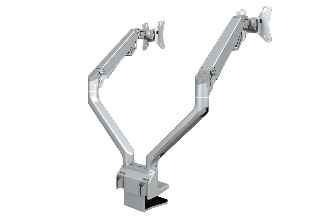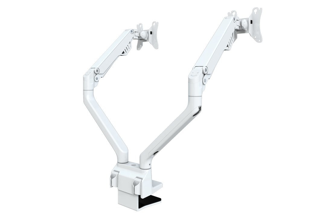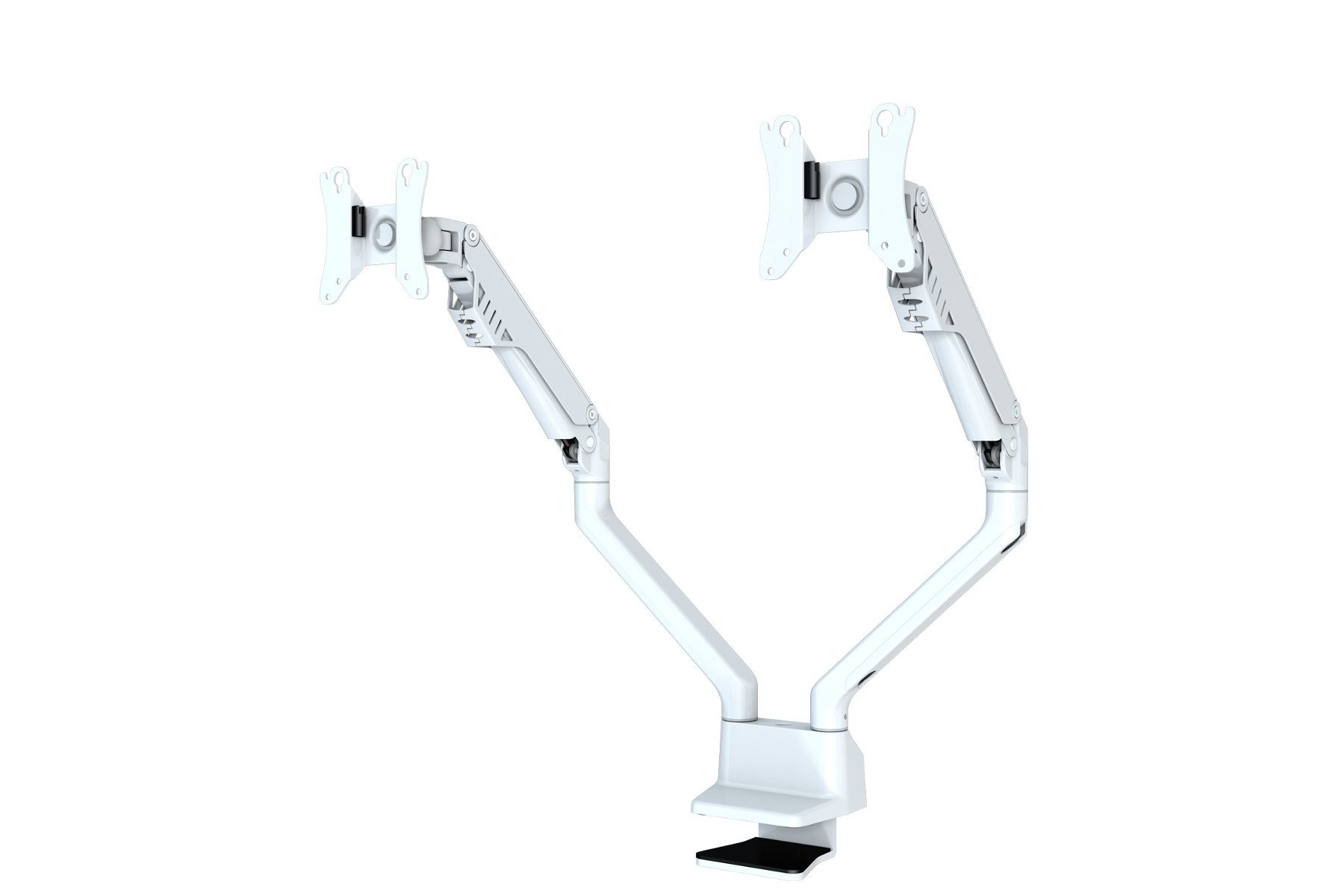 De beeldschermarmen zijn leverbaar in het wit, zilver en zwart. Het maximale gewicht is 9 kilo per scherm, dus maximale gewicht 18 kilo in totaal. Het VESA-monteersysteem is 75 x 75 mm – 100 x 100 mm. Bureaumontage kan via een bureauklem of bureaudoorvoer worden gedaan. U heeft recht op 5 jaar garantie