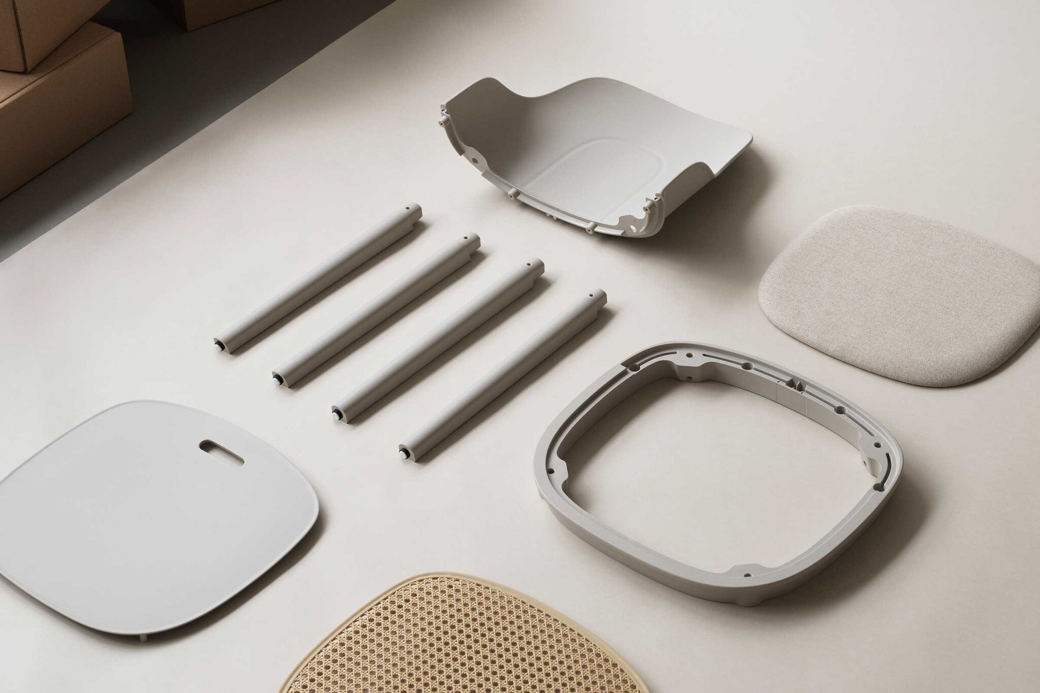 Gemaakt van kunststof, maar ook te stofferen of te voorzien van houten poten (voor binnen)