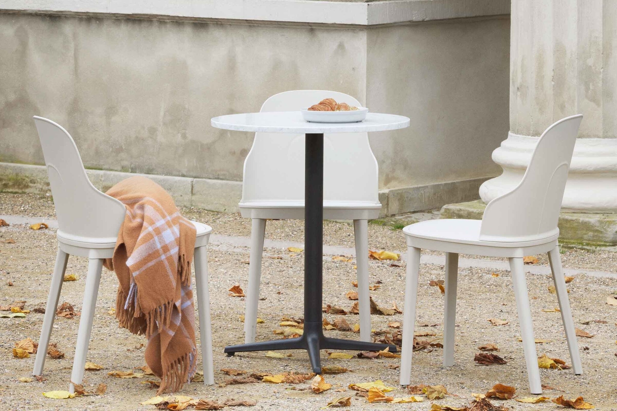 Het ontwerp van deze Allez stoel van Normann Copenhagen verwijst naar het Franse stadsleven en de bistrocultuur die aan het eind van de 19e eeuw ontstond en sindsdien een populaire manier van leven is geworden over de hele wereld. Ontwerper Simon Legald geeft een eigentijdse look en feel aan het de traditionele caféstoel en speelt met design, functionaliteit en duurzaamheid.