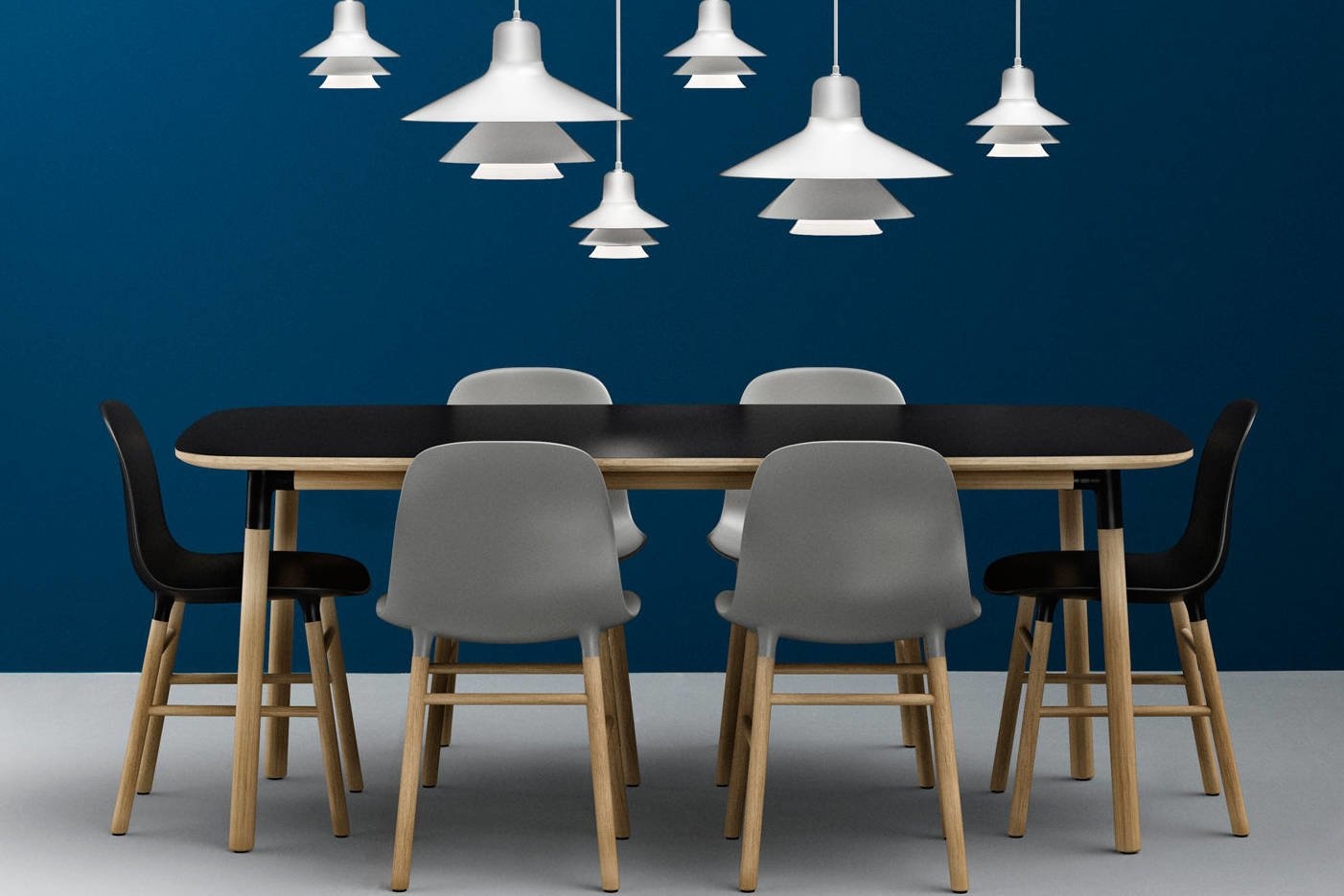 De Normann Copenhagen Form Table is een langwerpige of vierkante houten kantinetafel. Verkrijgbaar in verschillende kleuren en 2 maten past deze tafel in het bedrijfsrestaurant, kantine of in uw eigen keuken als eettafel. Van dezelfde ontwerper, Simon Legald, zijn ook de bijpassende Form Chair kantinestoelen. Met een vochtige doek zijn de tafels makkelijk schoon te houden. Afmetingen vierkante en rechthoekige tafelsDe vierkante Form Table is 74,4 cm hoog en het tafelblad is 120 bij 120 cm. De rechthoekige tafel is 74,4 cm hoog, 190 cm lang en 95 cm breed.