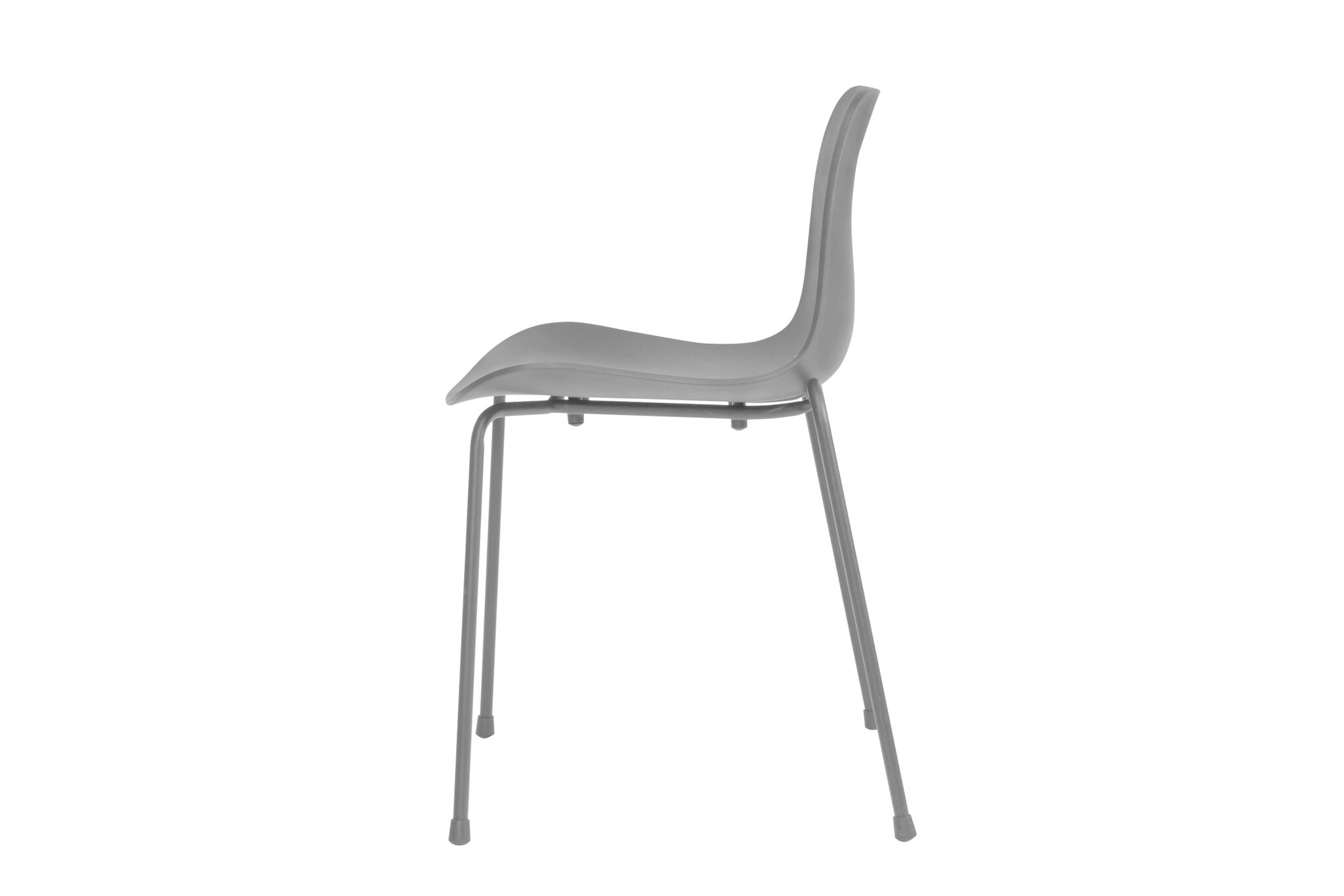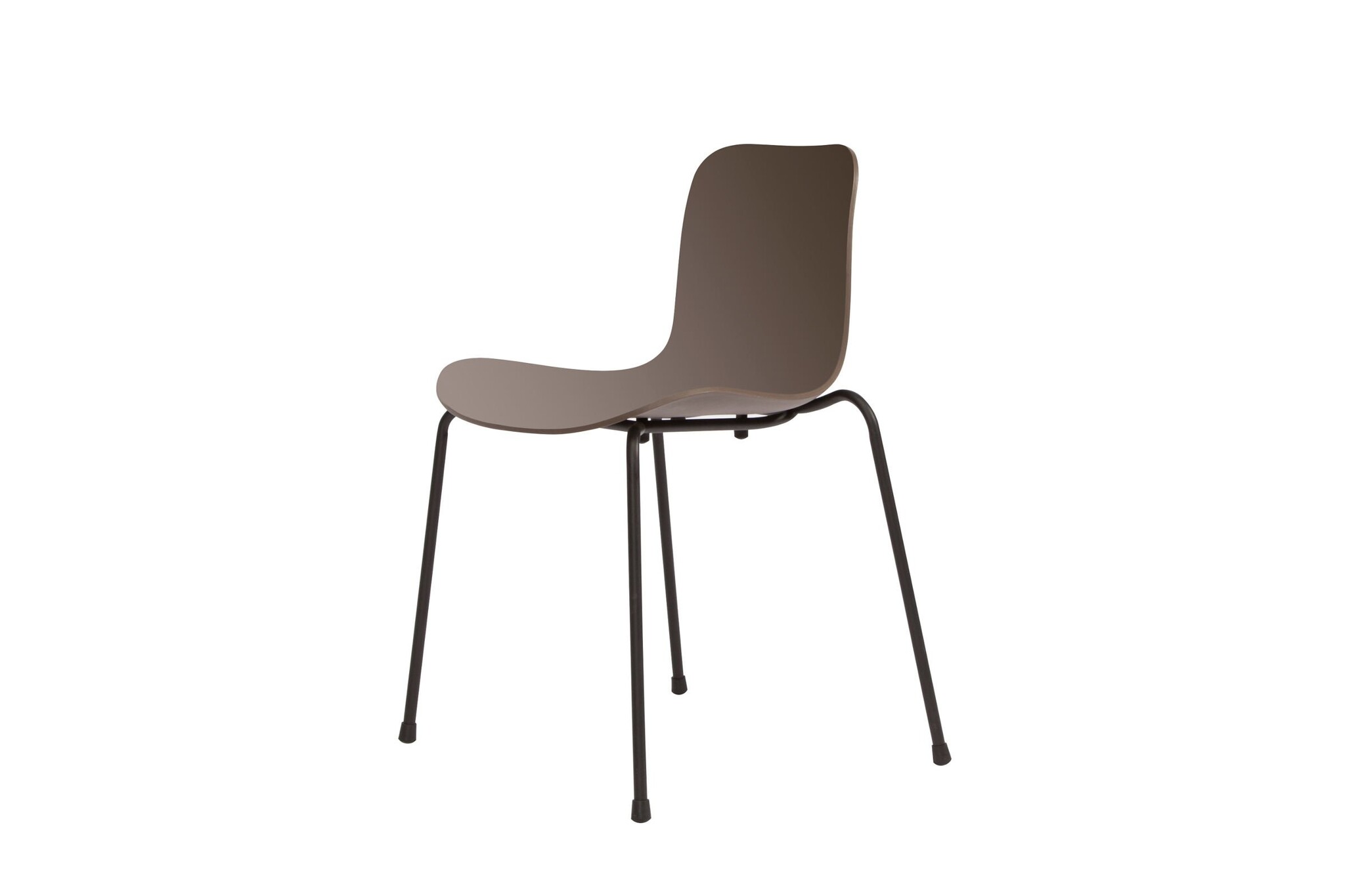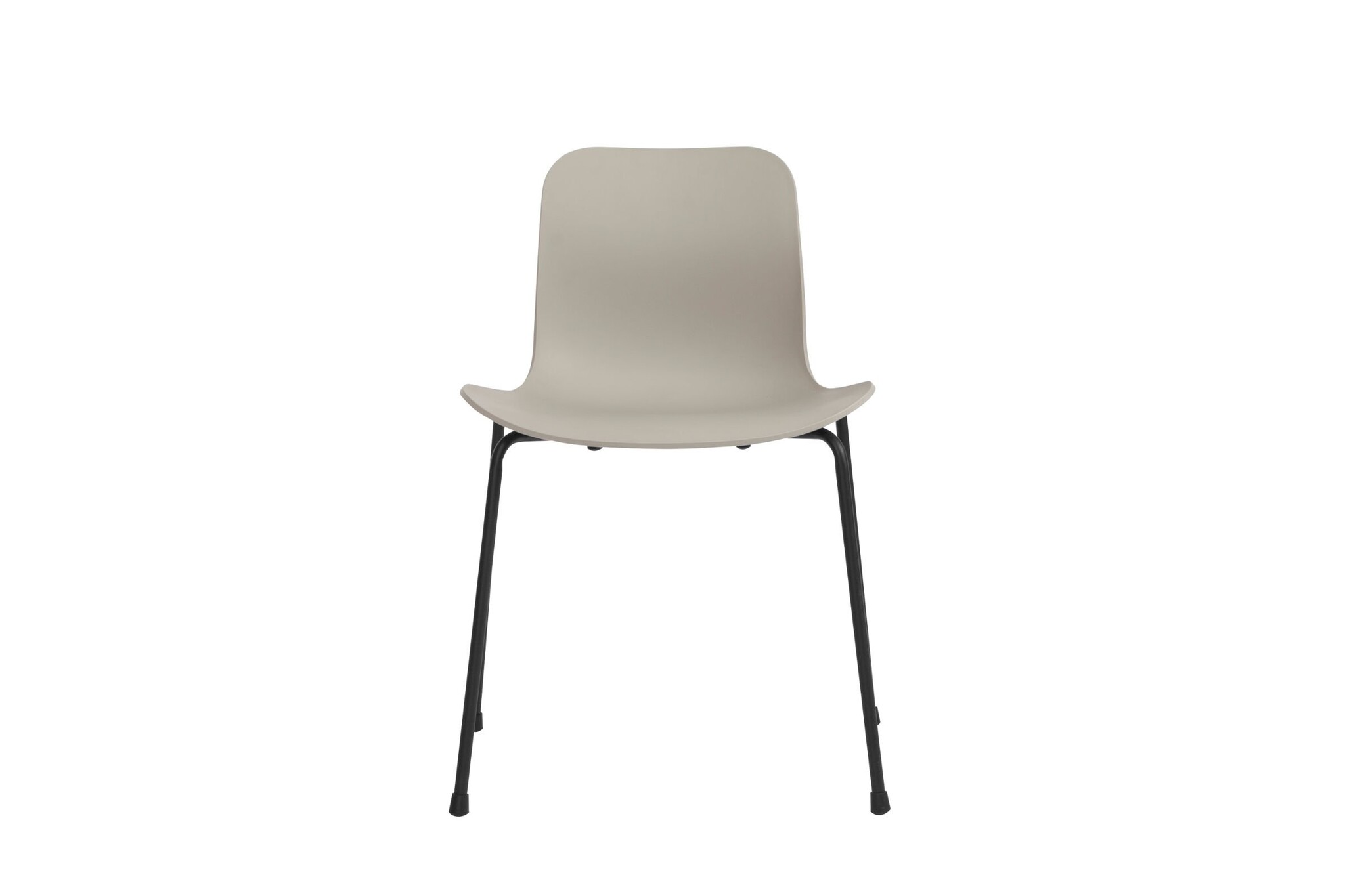 De NORR11 Langue Stacked Chair heeft een kunststof schaal in de kleuren: Off White, Flint Grey, Gargoyle Brown, Moss Green en Antraciet. Het metalen onderstel is in zwart.