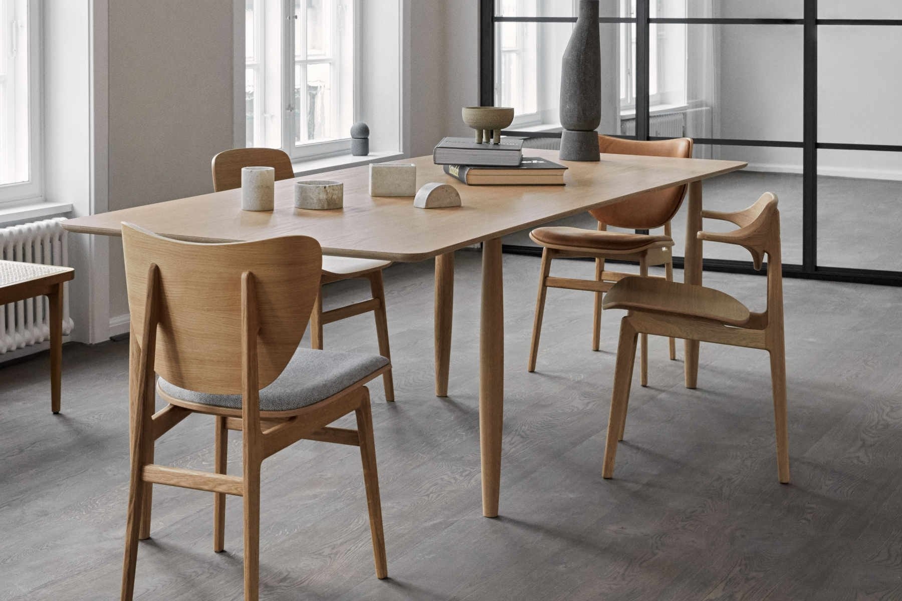 Het design van de Norr11 Oku Dining Table komt van Kristian Sofus Hansen en Nicolaj Nøddesbo.