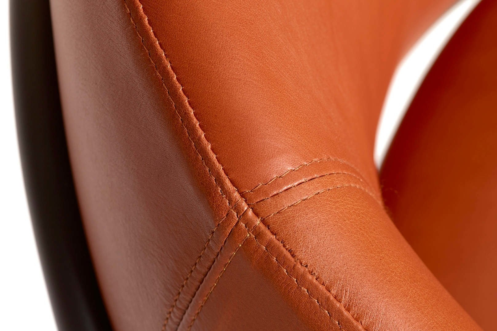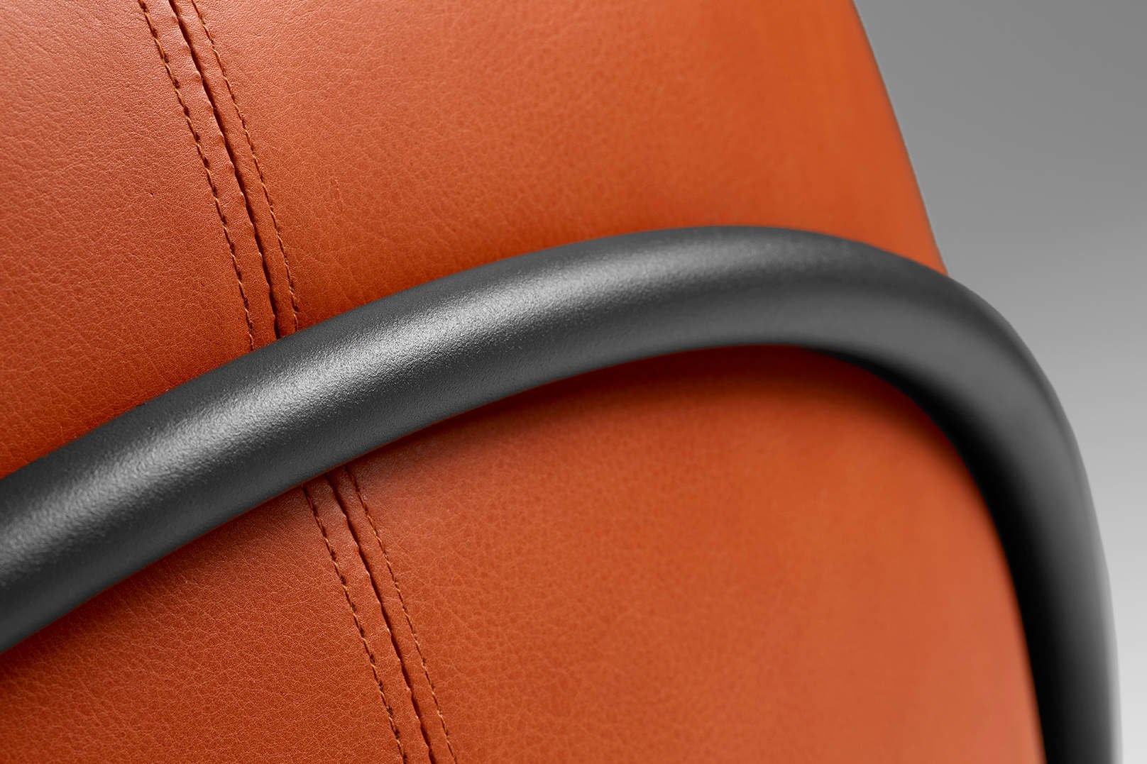 De stoel heeft armleuningen met een duidelijke stiknaad.