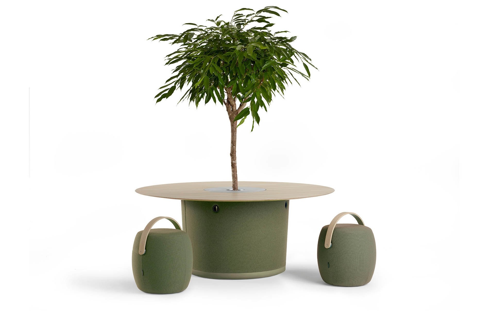 De On Point tafel is ontworpen door Mattias Stenberg, de ontwerper achter de succesvolle kruk Carry On. Deze past dan ook weer goed samen met de On Point tafel. Met zijn zachte en elegante verschijning van de tafel is deze geschikt als een ontmoetingsplek om even bij te praten en kan ook gebruikt worden met planten of andere groenvoorzieningen, om zo een barrière te creëren om wat persoonlijkere gesprekken te voeren. Het tafelblad kan namelijk uitgevoerd worden met een opening waarin een boompje of plant geplaatst kan worden. De tafel is ook verkrijgbaar met een energiebron, zodat het als oplaadpunt in openbare plaatsen, waar elektronische apparaten worden gebruikt, kan fungeren. Deze stopcontacten zitten in de gestoffeerde romp.
