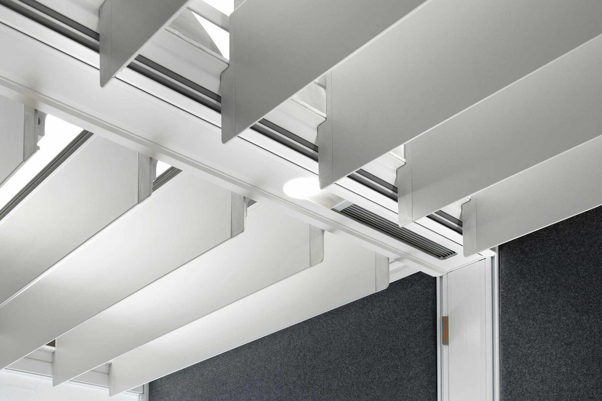 Het internationaal gepatenteerde daksysteem van de Orangebox Air³ beschikt over een geavanceerd brandveiligheidssysteem dat speciaal is ontwikkeld voor kantoren waar sprinklers zijn geplaatst. Zo voorkomt u dat er brand uitbreekt in de akoestische ruimte en kan de sprinklerinstallatie ook de ruimte beregenen.