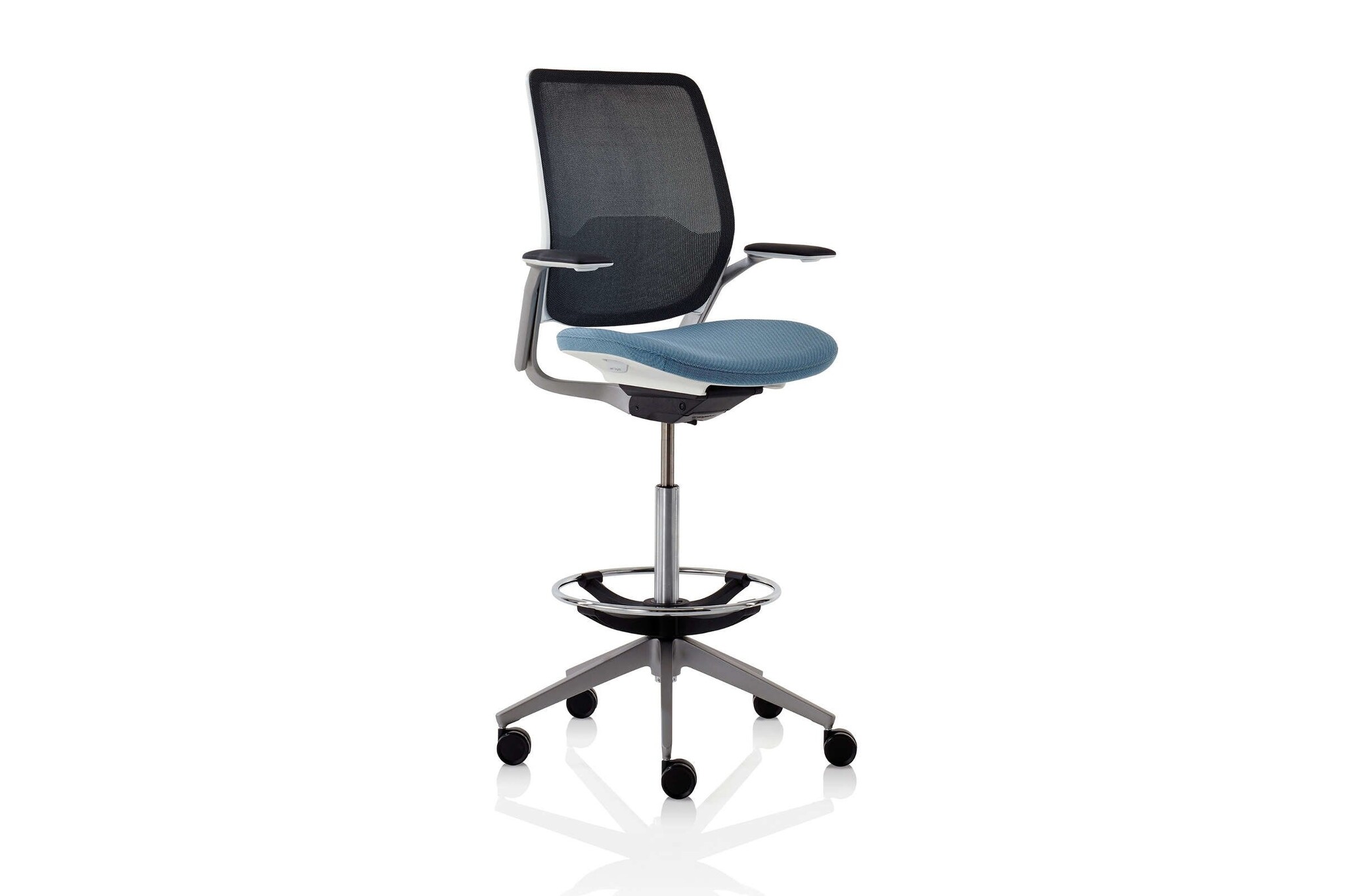Hoge werkstoel is voorzien van een voetenring