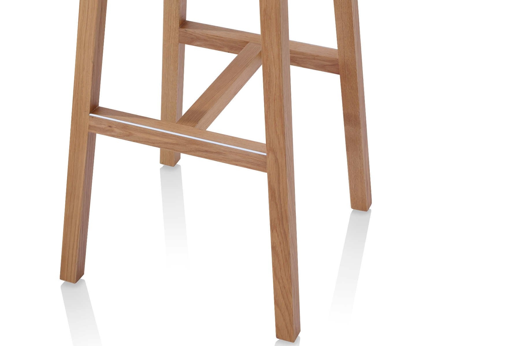 Een geïntegreerde roestvrijstalen strip is in de eikenhouten voetensteun gestoken voor een langere levensduur