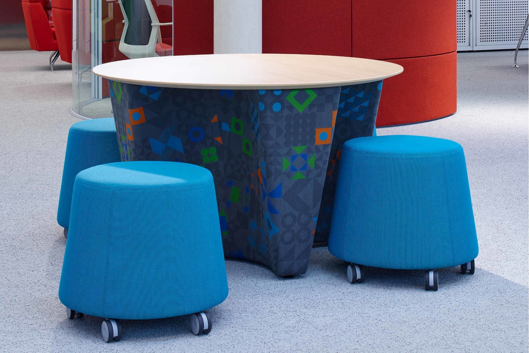 Met de Orangebox Sully heeft u er snel een zitplek bij. U rijdt de poef eenvoudig naar de gewenste plek en zitten maar! Deze poef is ontworpen om samen te werken doordat ze makkelijk te verplaatsen zijn. Hierdoor zijn ze veelzijdig toepasbaar en nemen ze weinig ruimte in. Plaats ze bijvoorbeeld in een entree of in een vergaderruimte en uw bezoekers of gasten hebben een zitplaats. Dankzij de wielen hoeft u de poef niet op te tillen; u duwt of schuift de poef makkelijk naar de gewenste locatie. Oplossingsgericht kantoormeubilair