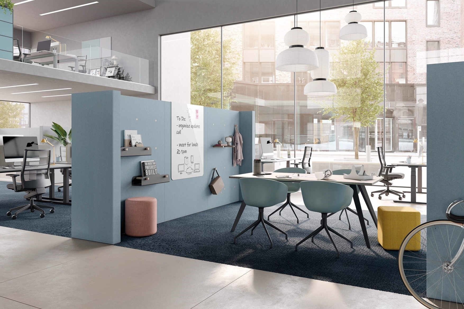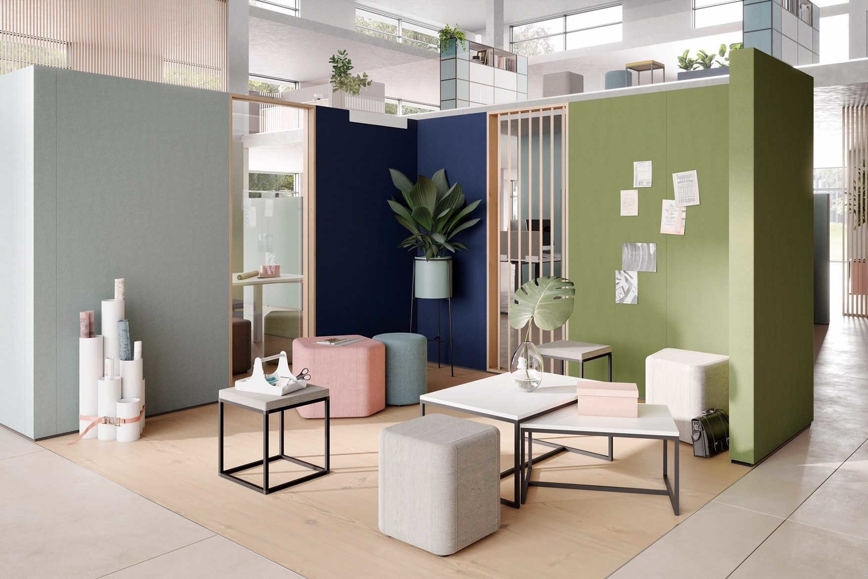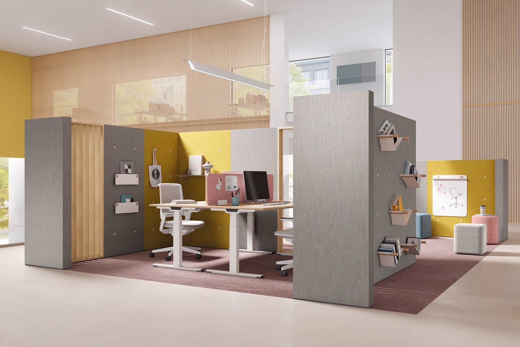 U kunt de Palmberg Clamp wanden als scheidingswand gebruiken om een ruimte te verdelen en zones te maken, maar bijvoorbeeld ook om uw keuken of printer plaatsen, zodat het geluid van het koffieapparaat of printer opgevangen wordt. In open kantoren staat vaak een pantry om bezoekers en medewerkers te voorzien van een drankje.