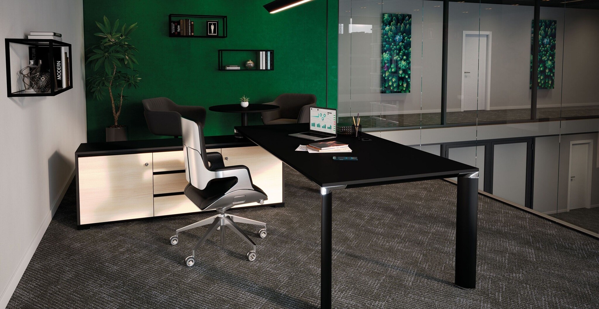 - Hoogwaardig vergader- en werkpleksysteem