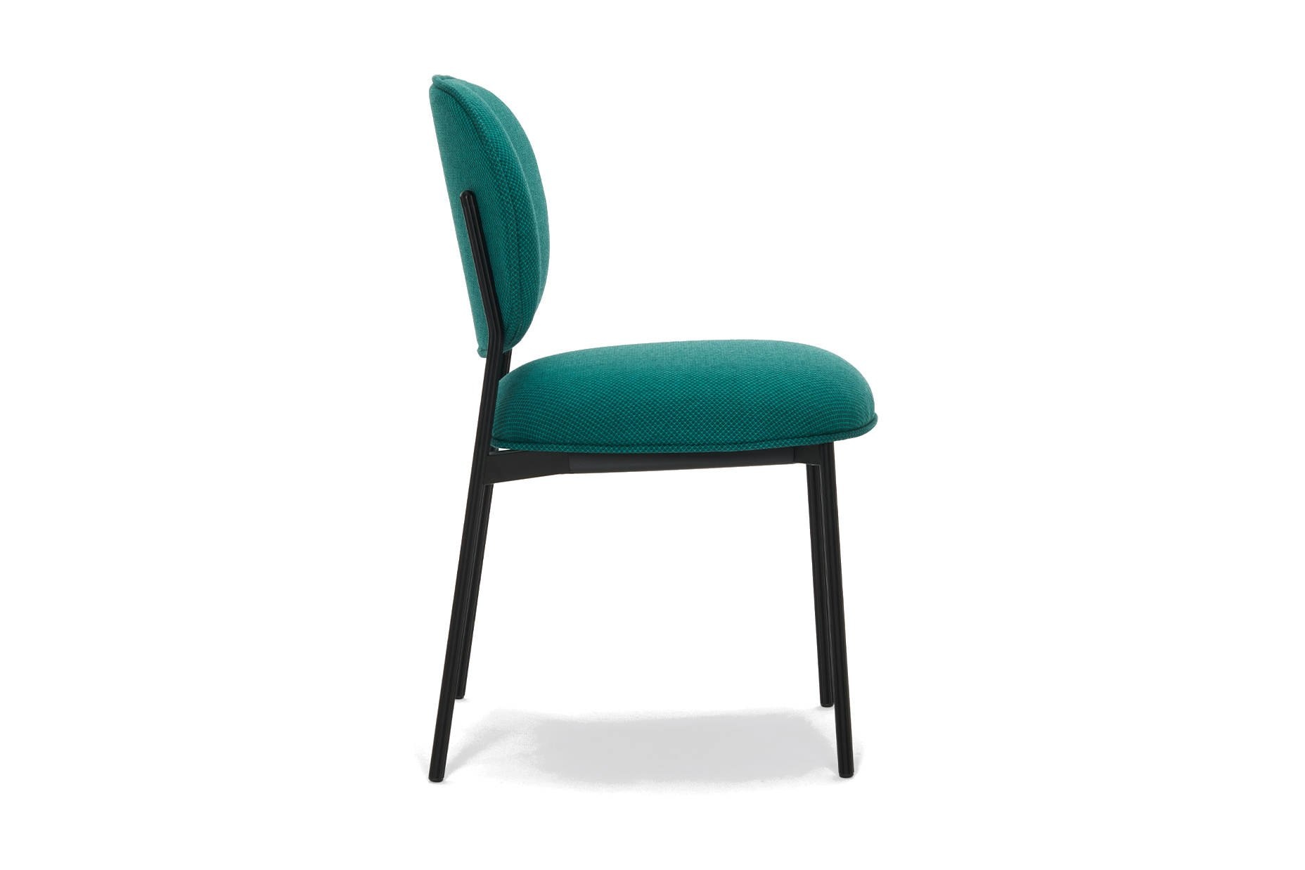 Deze stapelbare stoel is te stofferen in de stofsoorten van Kvadrat (Relate, Jaali en Velvett Still). Het aluminium frame geeft een mooi accent. De rug van de Pedrali Blume stoel is netjes afgewerkt met oog voor detail.