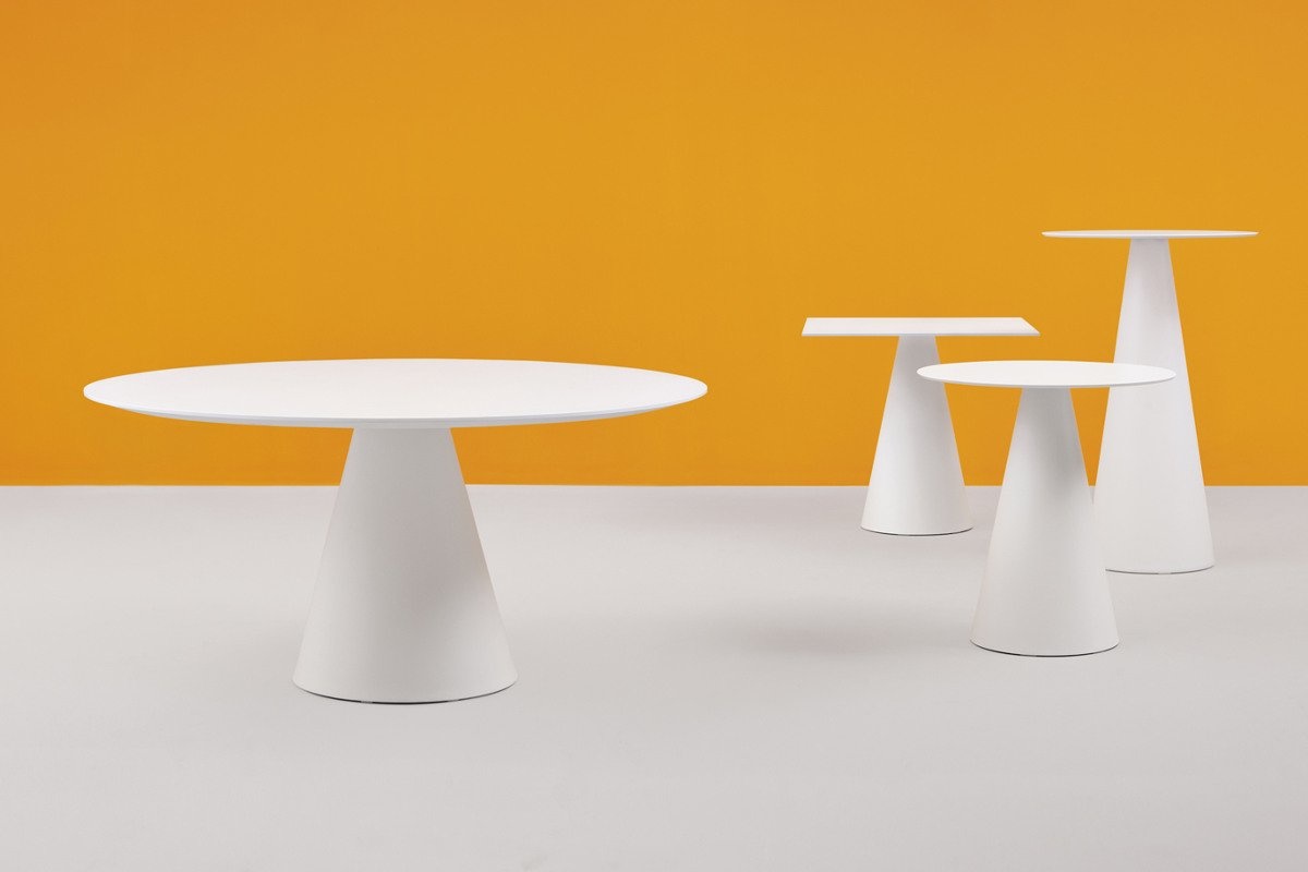 De veelzijdige Ikon collectie is nu uitgebreid met Ikon Big, een verzameling van nieuwe onderstellen, waarbij grotere tafelbladen op passen. De Ikon Big 869 heeft een basis van polyethyleen. Verkrijgbaar in de kleuren wit, zwart, lichtgrijs en zand.
