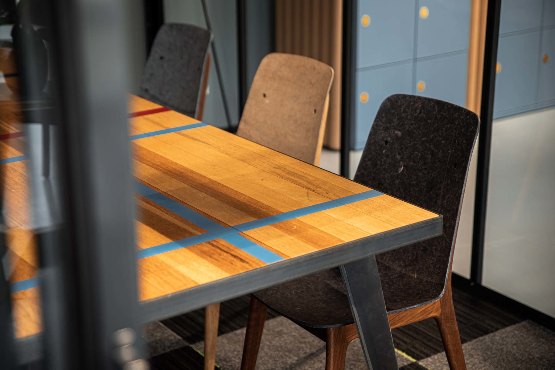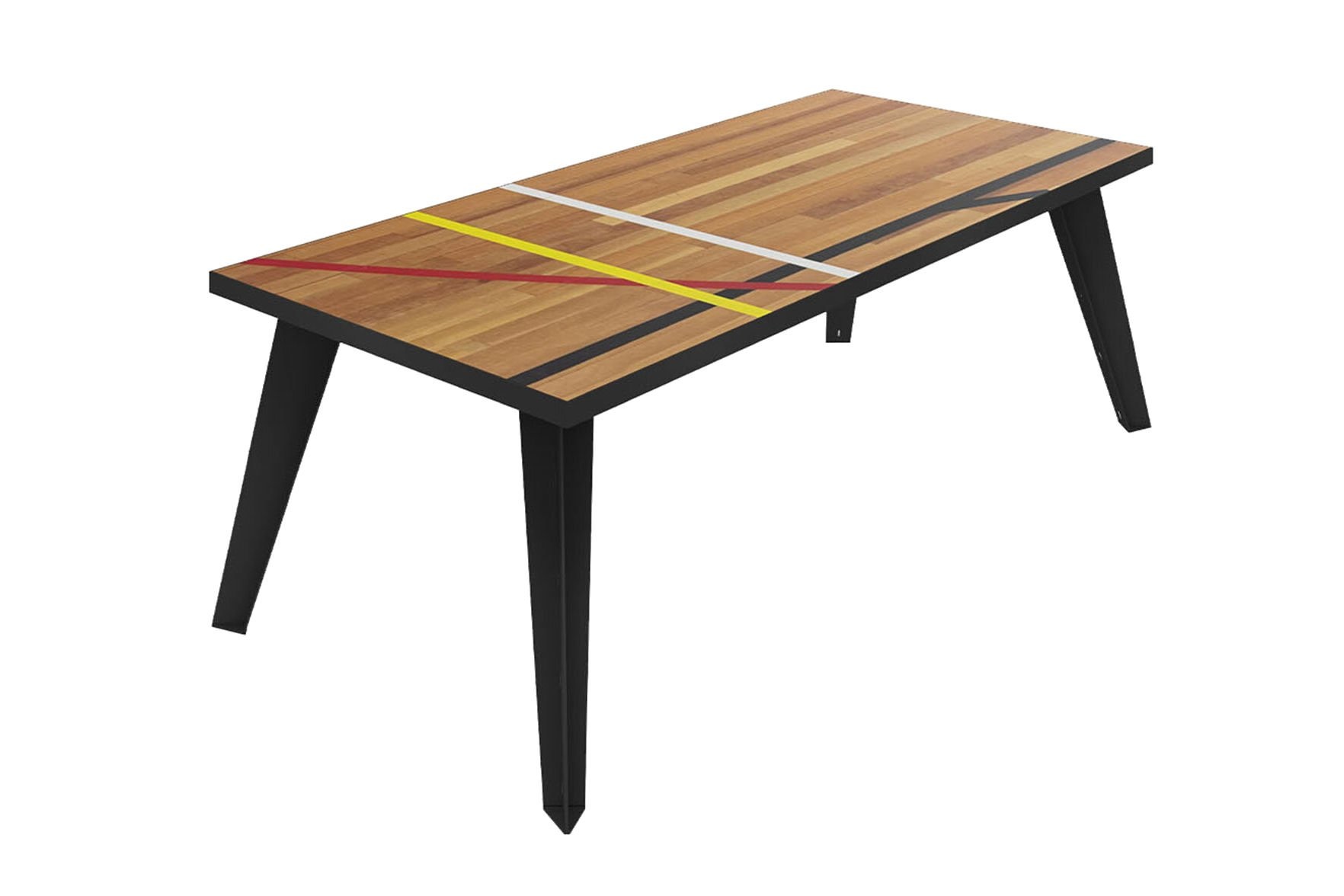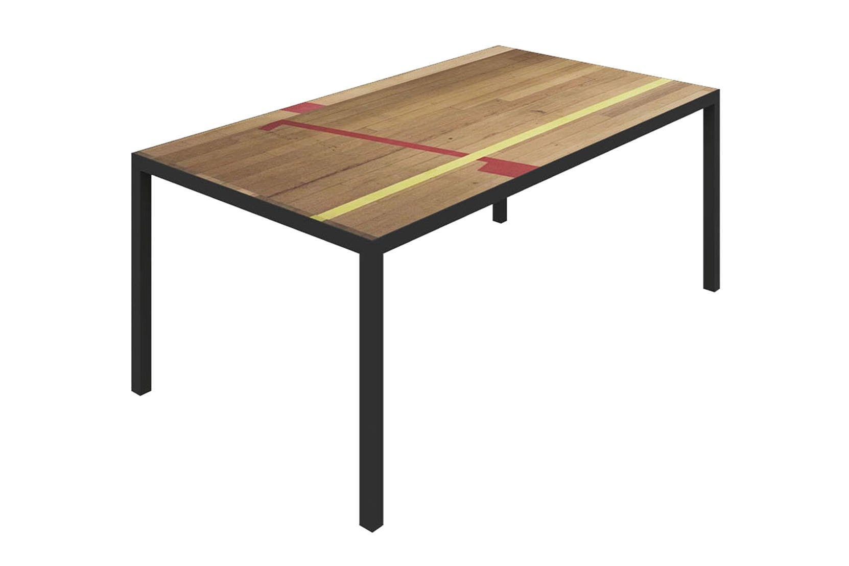Tafel gemaakt van gymvloeren