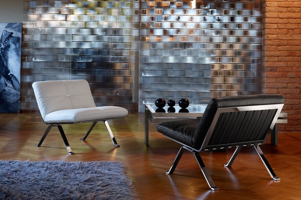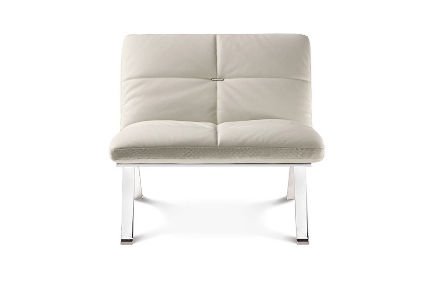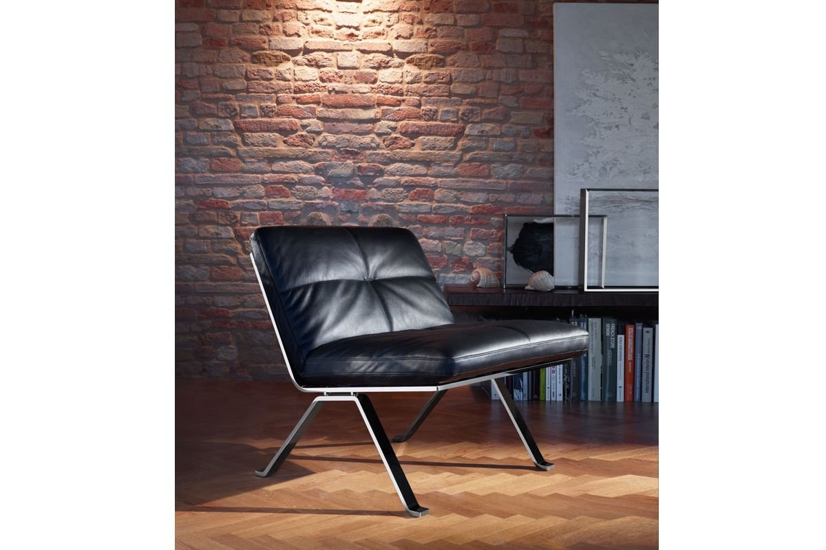 Poltrona Frau Brooklyn fauteuil is opgebouwd uit een stalen verchroomd onderstel. De kussens zijn standaard voorzien van Pell Frau leer. In het midden van de rug is een metalen accent verwerkt. De binnenzijde van de zitting is polyurethaan schuim van verschillende dichtheden in combinatie met polyester watten. Afmetingen Poltrona Frau Brooklyn fauteuil