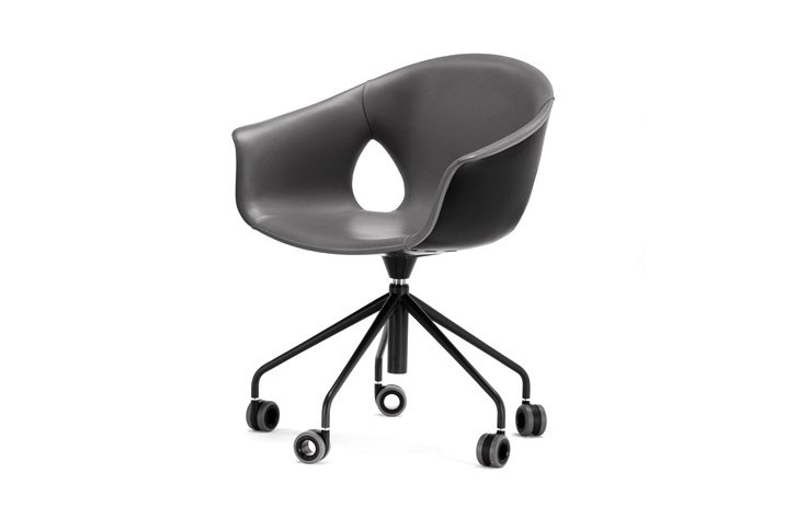 De Poltrona Frau Ginger Ale stoelen zijn beschikbaar in 4 versies met een antraciet, cement of krijt lak die overeenkomen met de zitschaal, of verchroomd. De fauteuil heeft vier metalen poten met een driehoekig profiel en plastic doppen. De 5-spaaks basis met wielen is gemaakt van staal en is verkrijgbaar in een vaste hoogte draaibare versie en ook in een gasveer-versie, zodat u de zithoogte aan kunt passen.