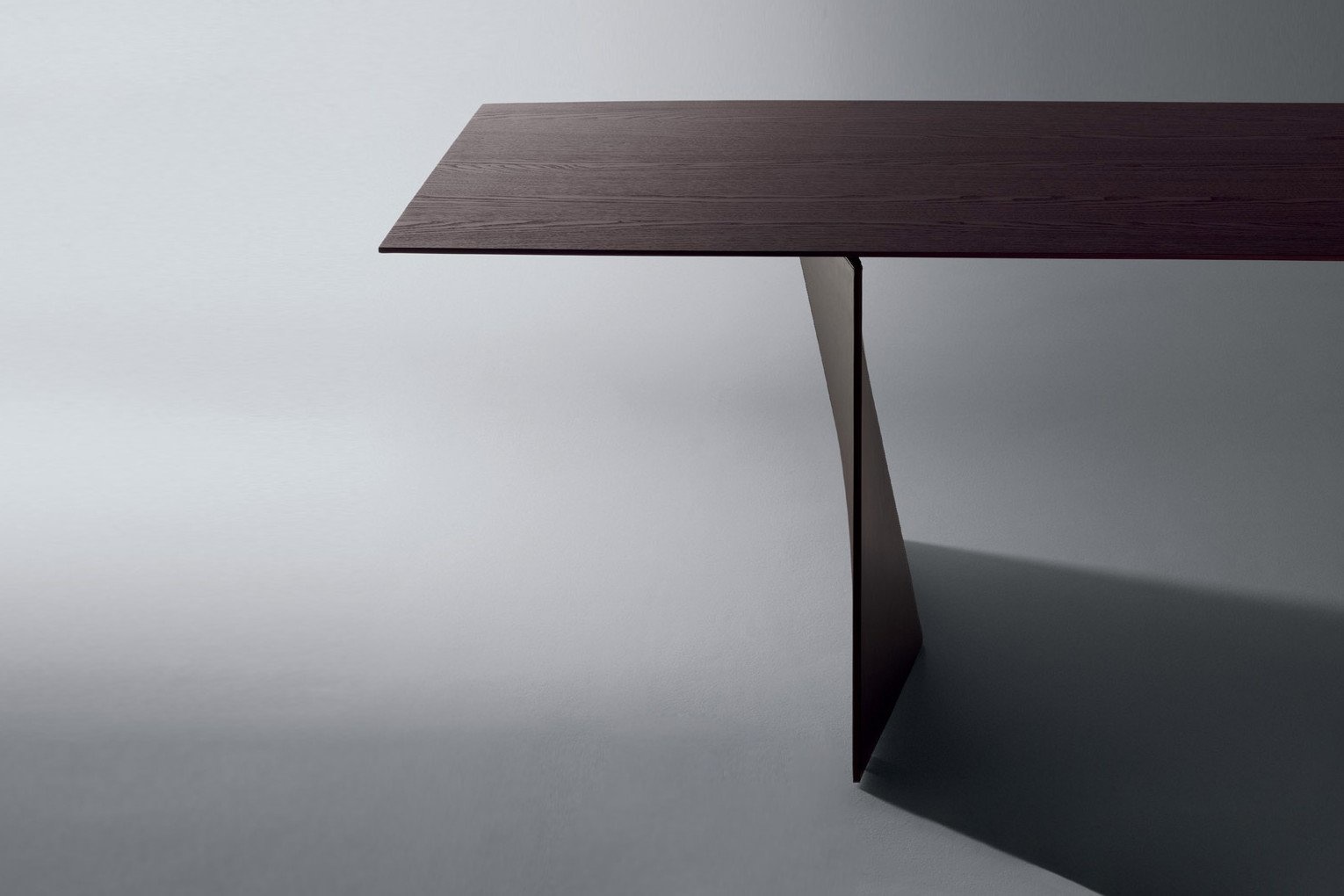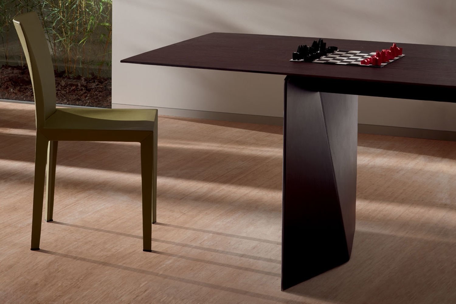 Poltrona Frau Palio een discrete en onderscheidende tafel. De tafel is voorzien van zachte randen en het blad is gemaakt van spaanplaat met een gekleurde essen wengé fineer. De dragers zijn in gegoten polyurethaan hardschuim. Specificaties tafel